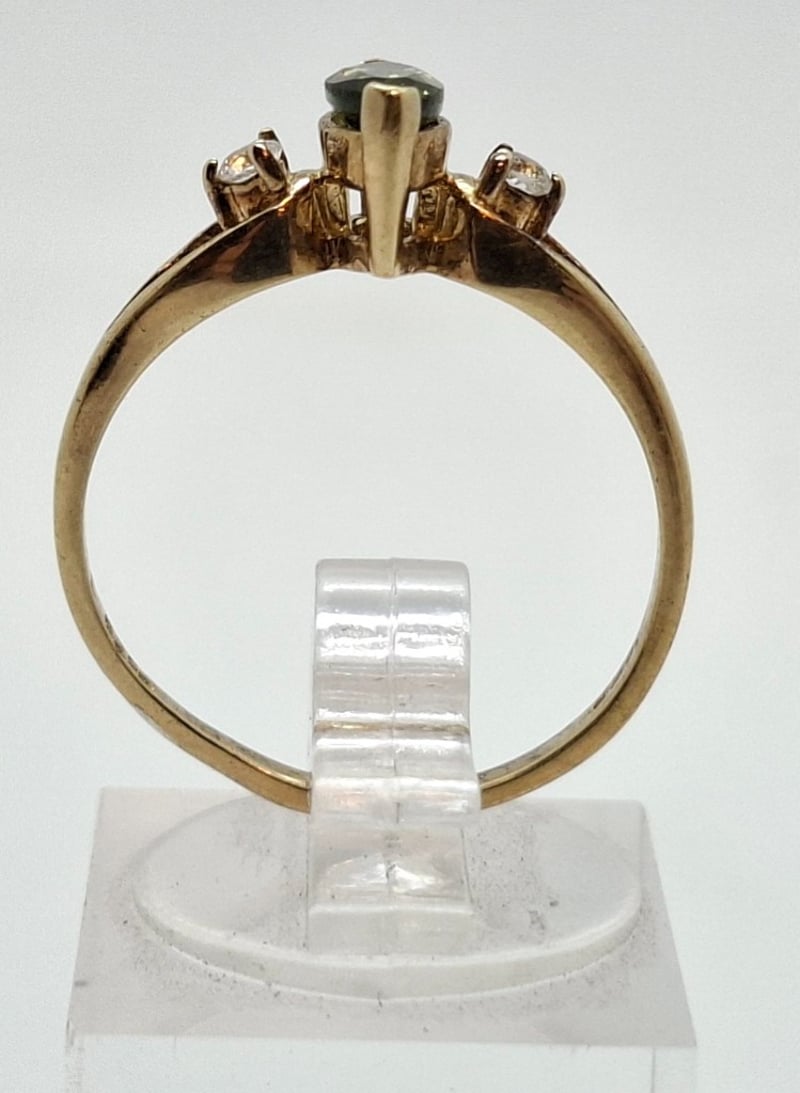 Ring Features Marquise Emerald Jadeite Gem In Centre Claw Setting