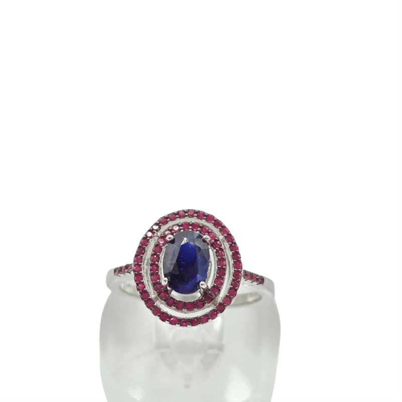 NATURAL SAPPHIRE & RUBY RING – 925 SILVER, ROYAL BLUE & VIVID RED, CERTAUTH™ CERTIFIED