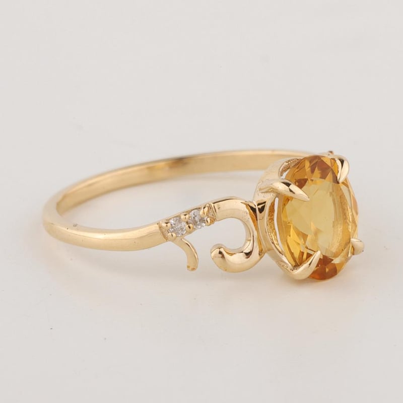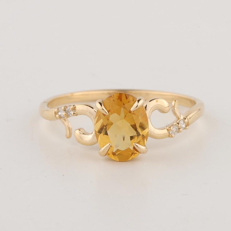 9CT YELLOW GOLD NATURAL CITRINE & DIAMOND RING