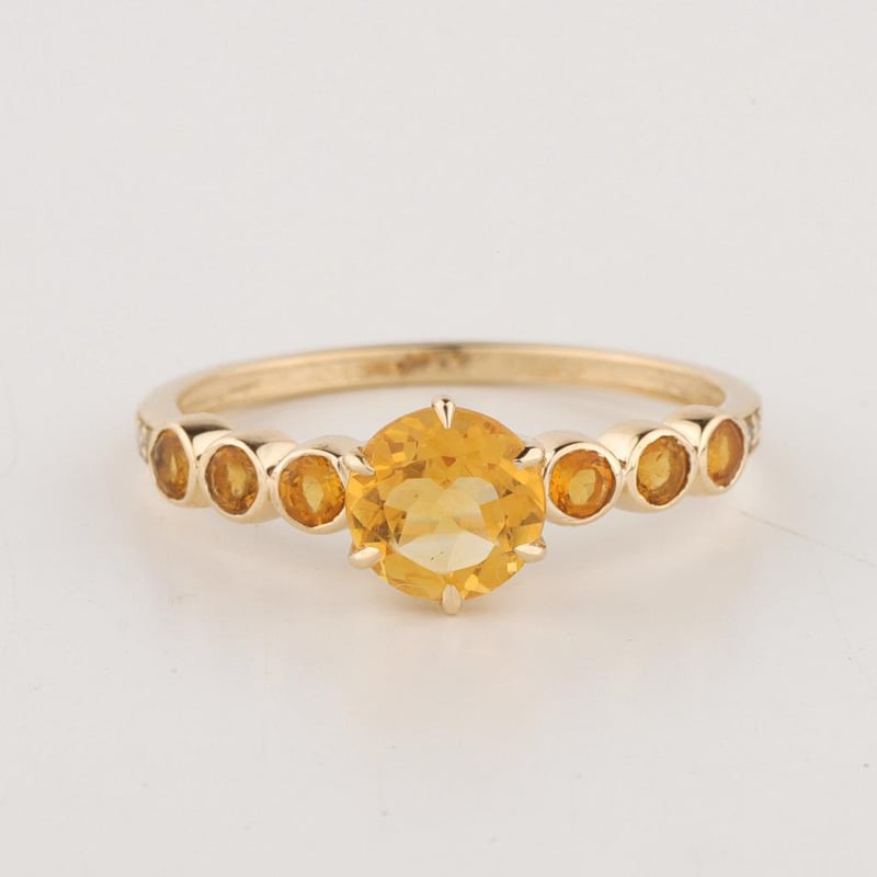 The Ring Consists Of (1) Round Brilliant Natural Citrine & (6) Round Brilliant Cut Citrine. Surrounding The Main Stones Are Round Brilliant Cut Natural Diamonds.