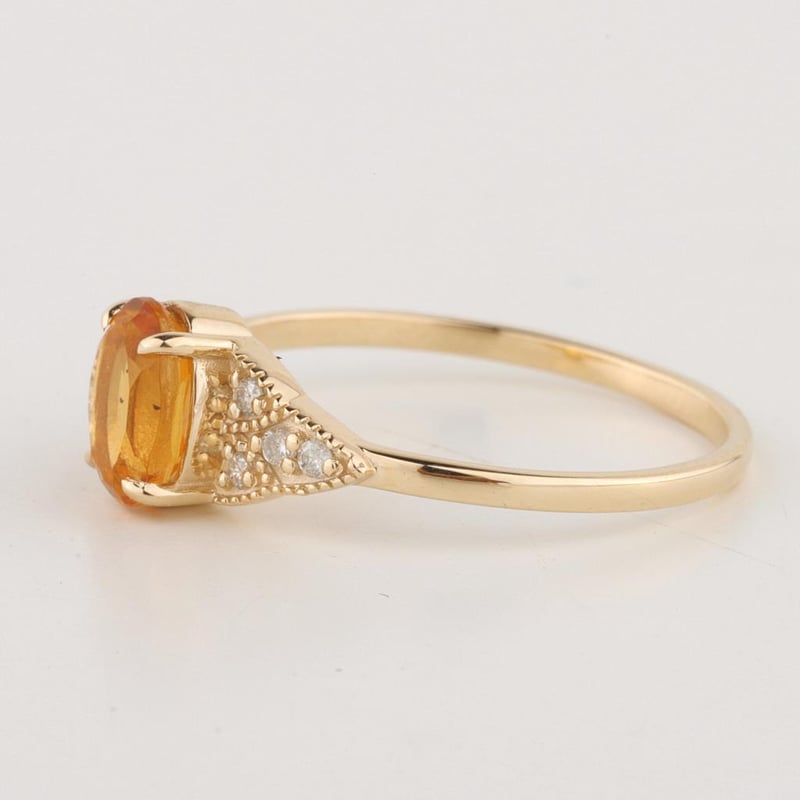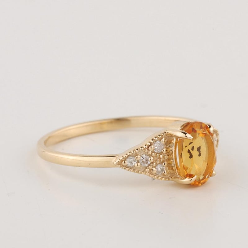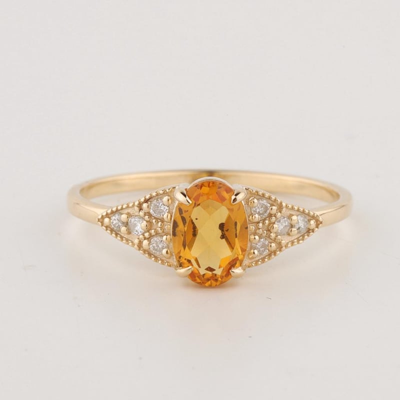 9CT YELLOW GOLD NATURAL CITRINE & DIAMOND RING