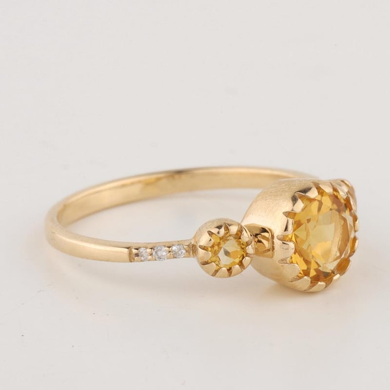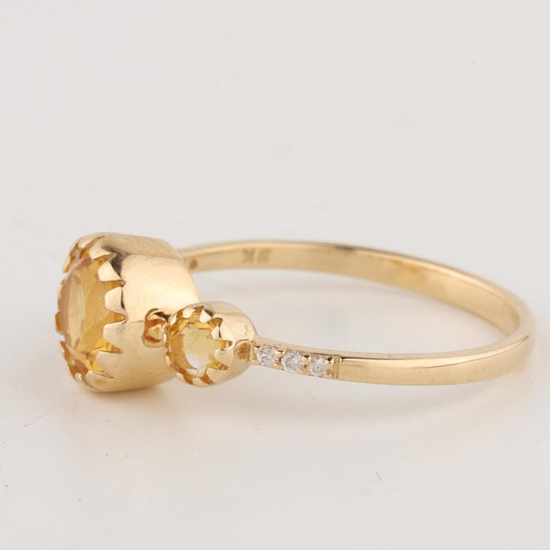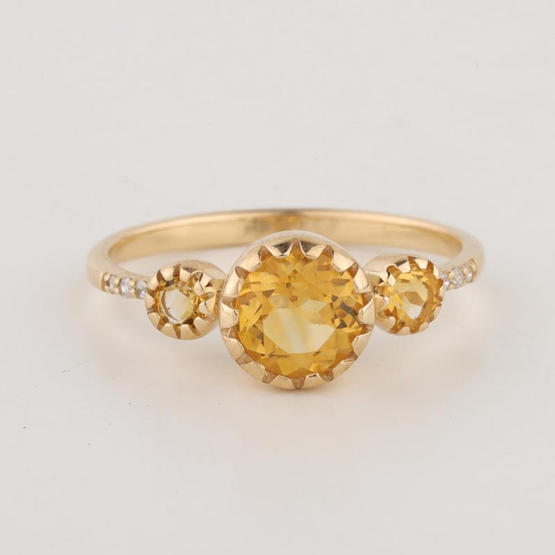 9CT YELLOW GOLD NATURAL CITRINE / NATURAL CITRINE & DIAMOND RING Weight Of The Item: 1.92 GFineness Of Metal(S): Yellow Gold 9KtThe Ring Consists Of (1) Round Brilliant Natural Citrine & (2) Round Brilliant Cut Citrine. Surrounding The Main Stones Are Round Brilliant Cut Natural Diamonds.Antique StyleIdentification: Natural Citrine / Natural CitrineColor: Yellow / YellowShape: Round Brilliant Cut / Round Faceted CutNo. Of Stone: 3Dimension: 6 Mm X 6 Mm X 3.6 MmWeight: 0.75 Carats / 0.2 Carats Identification: Natural DiamondShape: Round Brilliant CutWeight: 0.03 CtsCut: Excellent 0160640+30