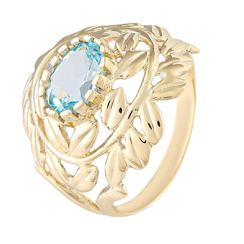 9CT YELLOW GOLD NATURAL SKY BLUE TOPAZ RING