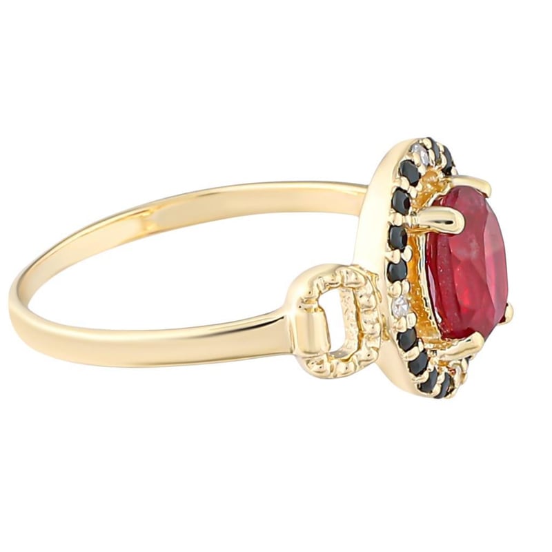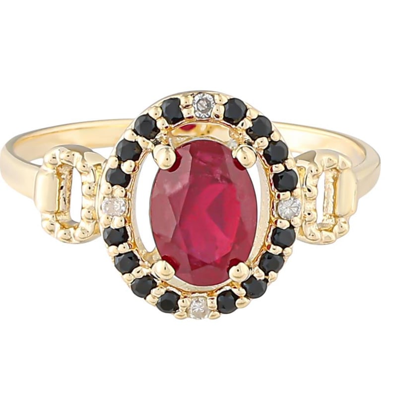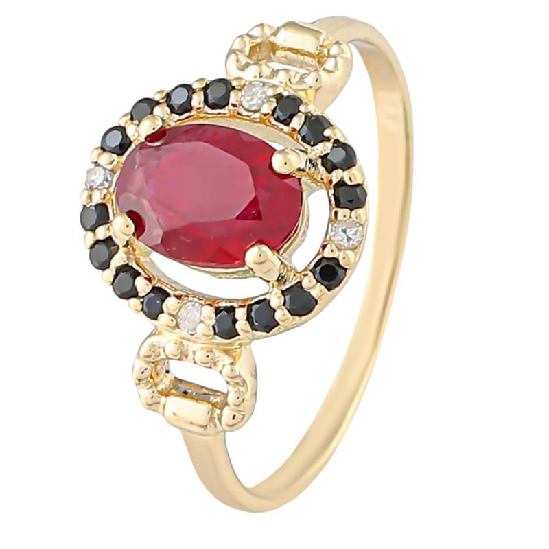 9CT YELLOW GOLD NATURAL RUBY / NATURAL BLACK SPINEL & DIAMOND RING
