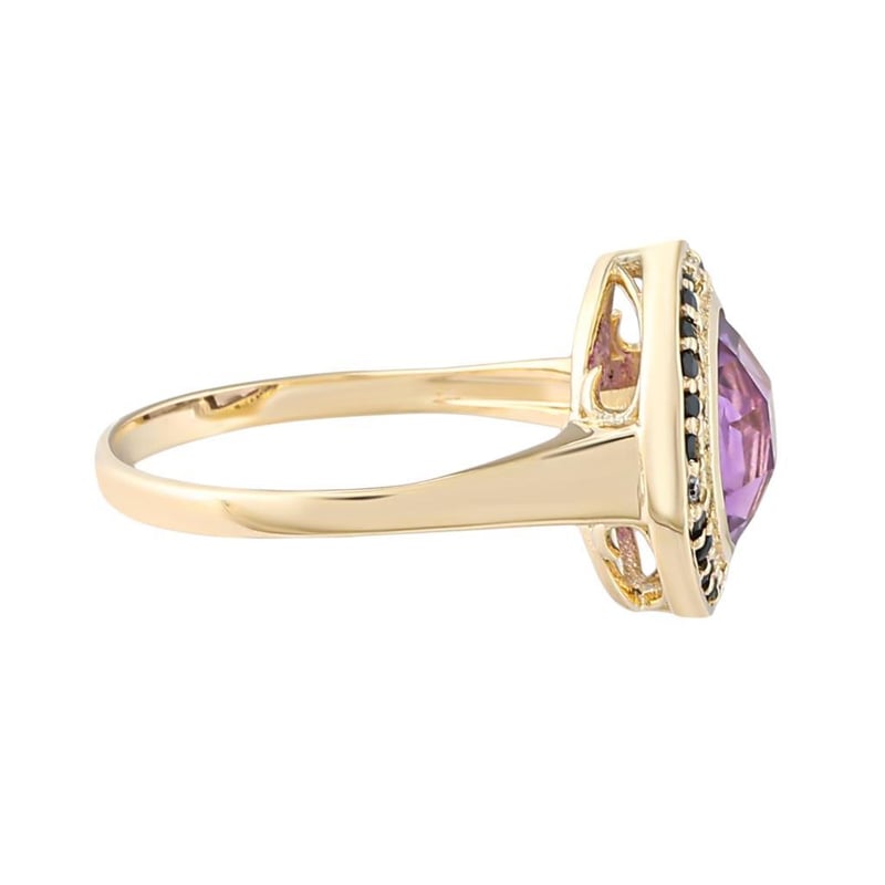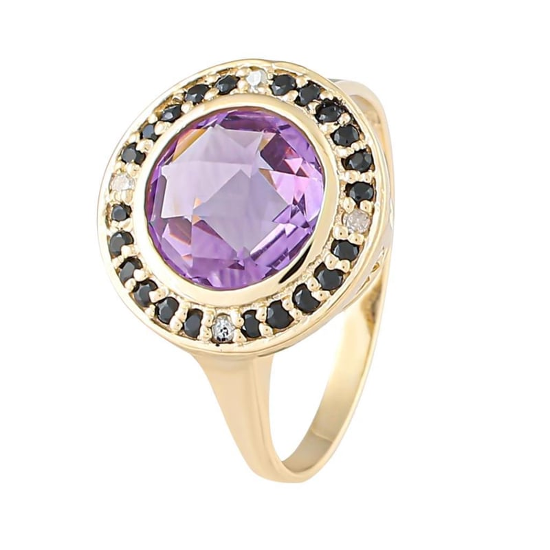 9CT YELLOW GOLD NATURAL AMETHYST / NATURAL BLACK SPINEL & DIAMOND RING