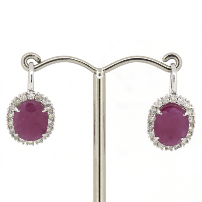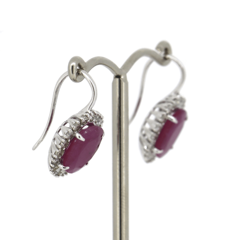 14K WHITE GOLD, RUBY AND DIAMOND, HALO DROP EARRINGS