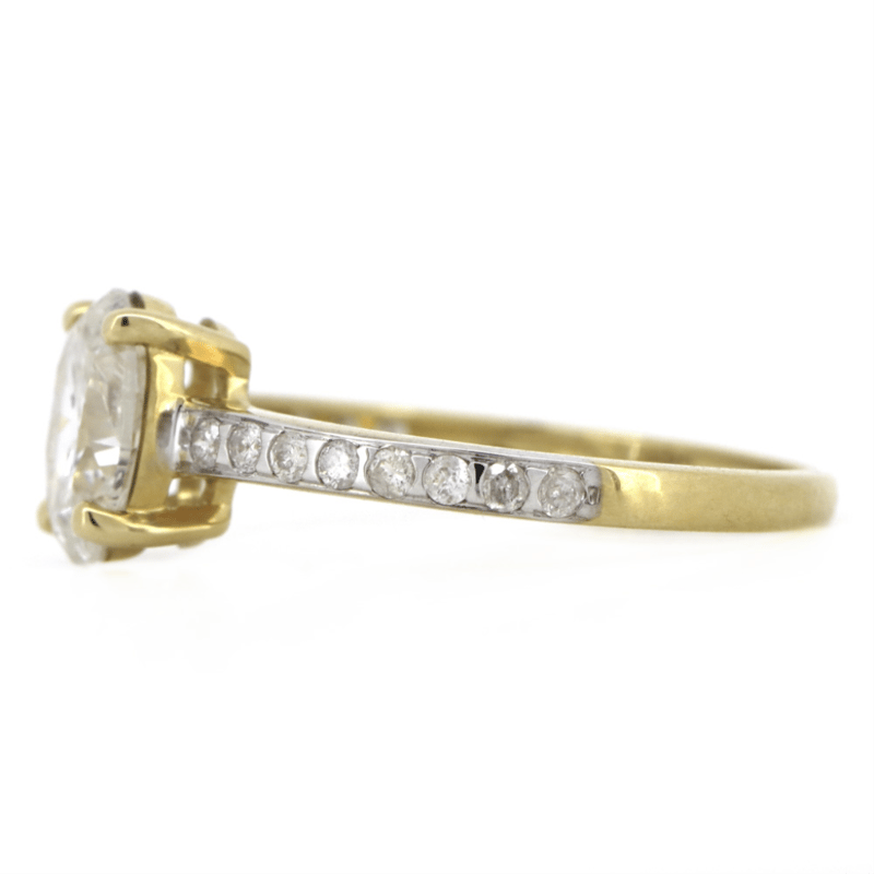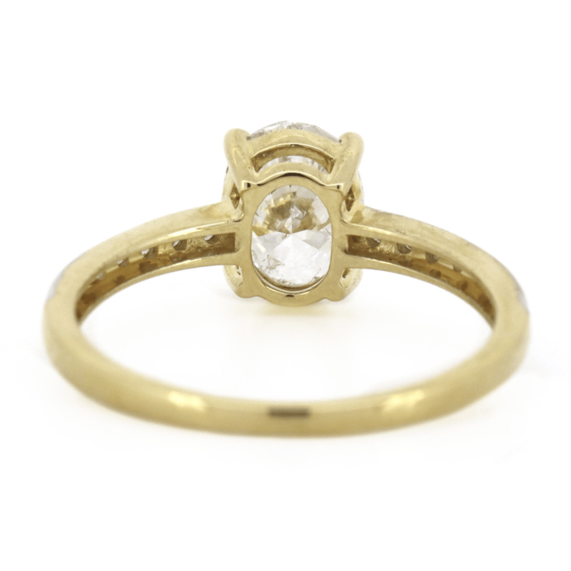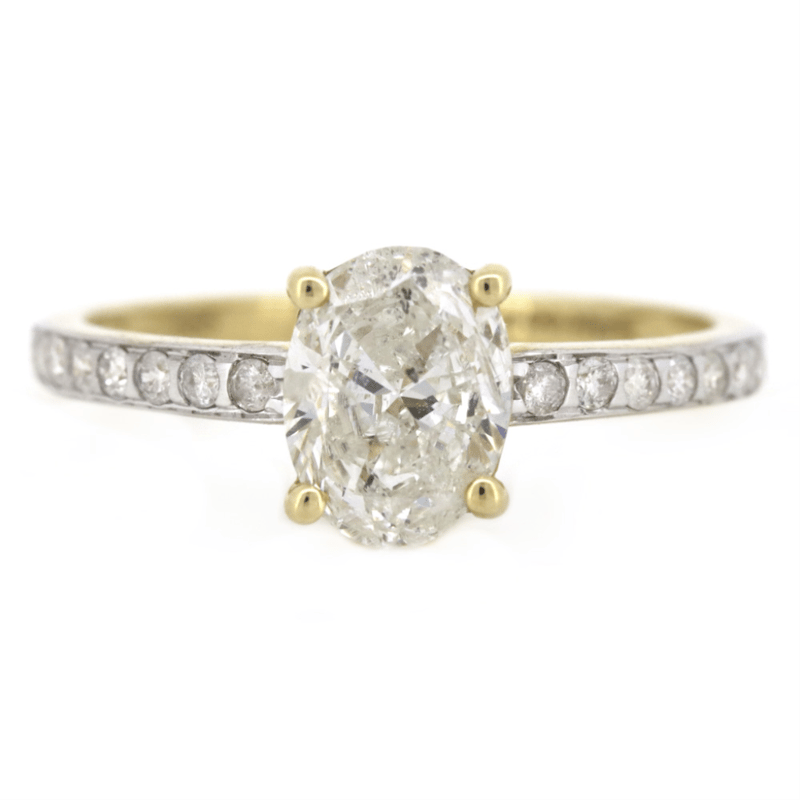 The Centre Features, One Oval Brilliant Cut, Diamond (1.01Ct, I-J Colour, P1-P2 Clarity), Claw Set. Decorating The Band Are, 16 Round Brilliant Cut, Diamonds (0.17Ct Tdw, J-K Colour, Si2-P2 Clarity), Punch Set. Ring Size K 1/2.