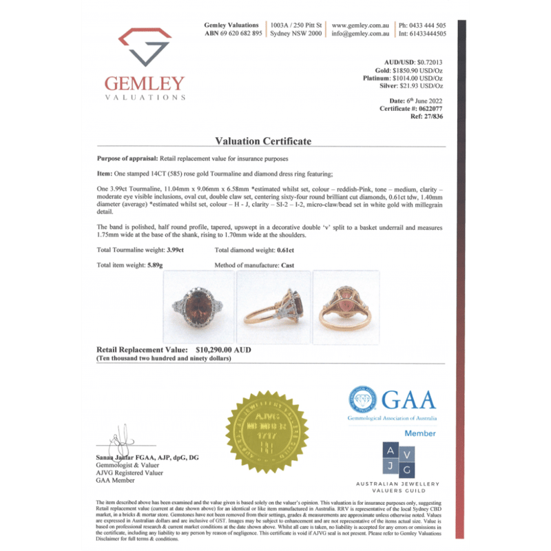 This Insurance Valuation has been provided by a registered Jewellery Valuer and is intended for insurance purposes only. The valuation amount has no bearing on the auction value of the item. Any questions regarding the valuation should be directed to the issuing Valuer (refer to contact details on the certificate) as Lloyds have no association or relationship with the Valuer or the valuation amount contained within the valuation.