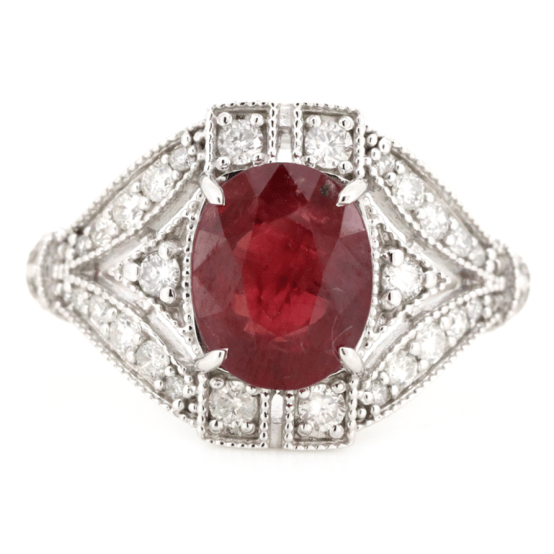 14K WHITE GOLD, RUBY AND DIAMOND, RING