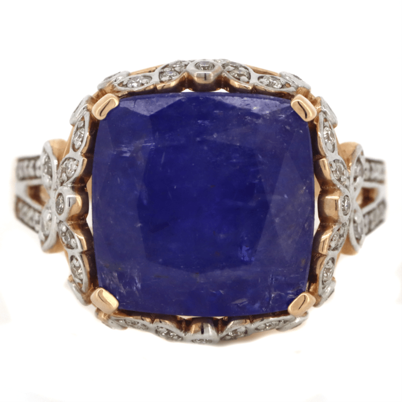 14K ROSE GOLD, TANZANITE AND DIAMOND, COCKTAIL RING