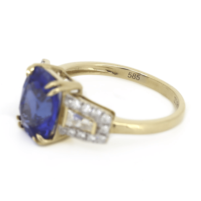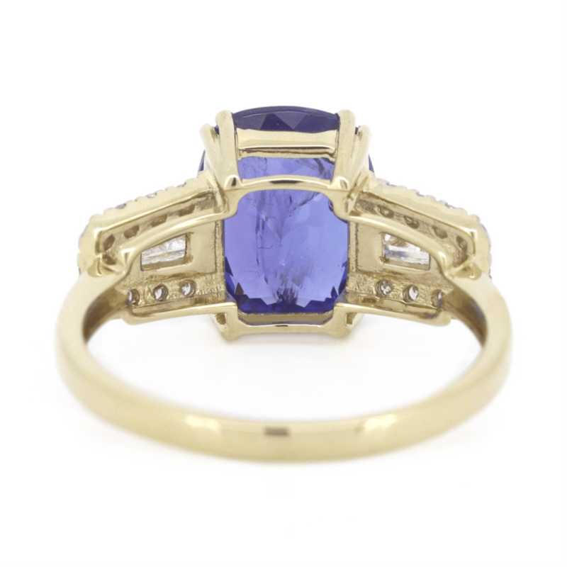 14K YELLOW GOLD, TANZANITE AND DIAMOND, DRESS RING
