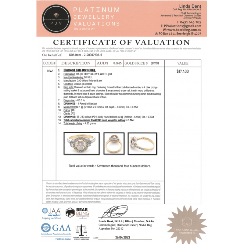This Insurance Valuation has been provided by a registered Jewellery Valuer and is intended for insurance purposes only. The valuation amount has no bearing on the auction value of the item. Any questions regarding the valuation should be directed to the issuing Valuer (refer to contact details on the certificate) as Lloyds have no association or relationship with the Valuer or the valuation amount contained within the valuation.