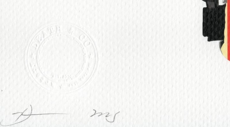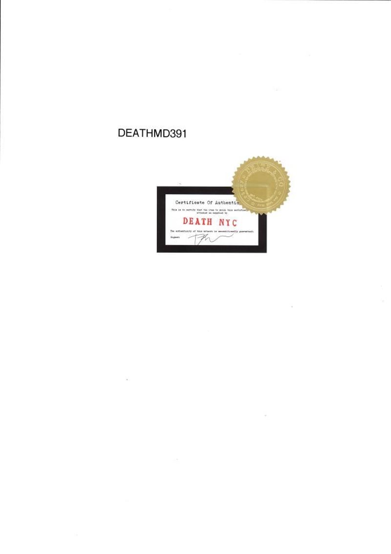 DEATH NYC (1979 - )Limited Edition Lithograph On Paper Title: Deathmd391Image Size: 30cm x 42cmFrame Size: Artwork Is UnframedSignature Details: Edition: 86/100 Signed On Lower Left Embossed Condition: Good Signed On Lower Left Embossed Lower Left, Editioned Lower Right, Embossed Gold Seal On Verso Accompanied By A Certificate Of Authenticity Condition: Excellent Provenance: Death Nyc Is A Street Artist From New York. She Grew Up In New York, She Was Exposed To A Variety Of Cultures, Which Made Her Question The Things She Saw On The Street. This Experience Is Vital In The Choice Of Her Pseudonym And Approach. Artwork Is Unframed & Accompanied By A Certificate Of Authenticity 162989+4