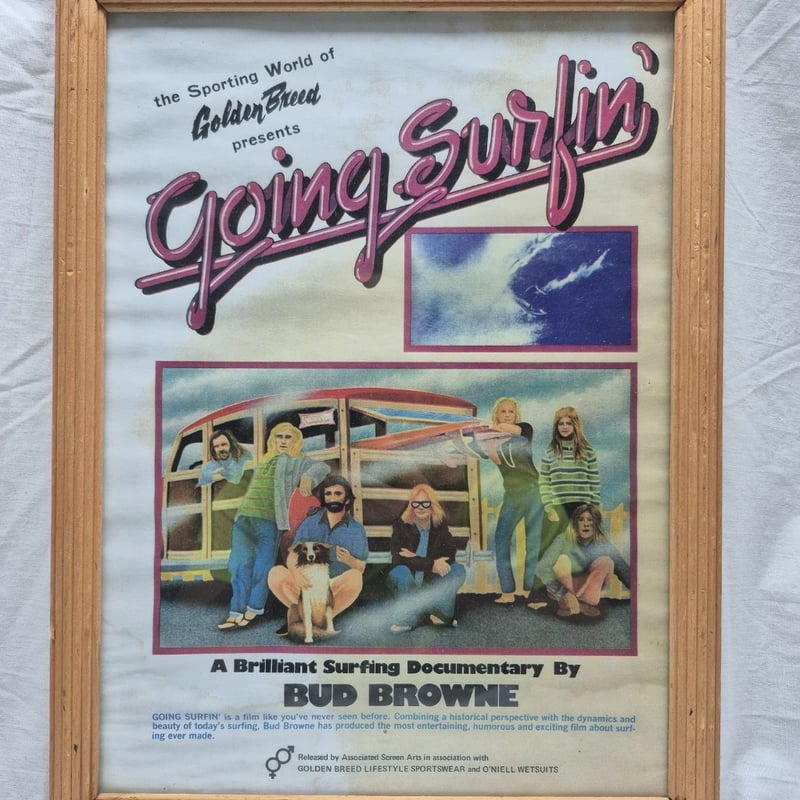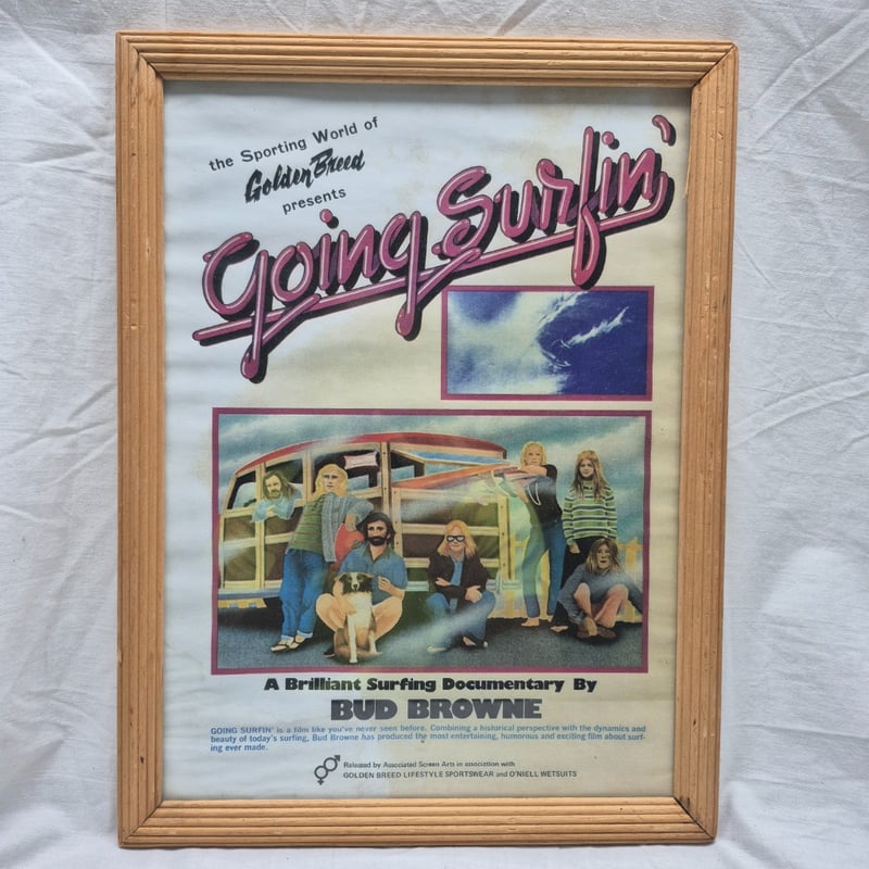 ARTIST UNKNOWN Lithograph On Paper Title: Bud Brownie Surfing Documentary Image Size: 37cm x 26.5cm Frame Size: 31.5cm x 41cm Condition: Good - Refer To Images Golden Breed "Going Surfing" Poster Rack 13A 587705+5