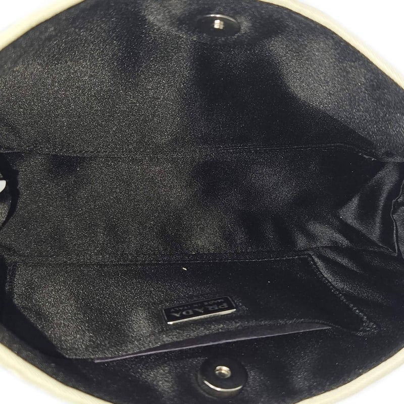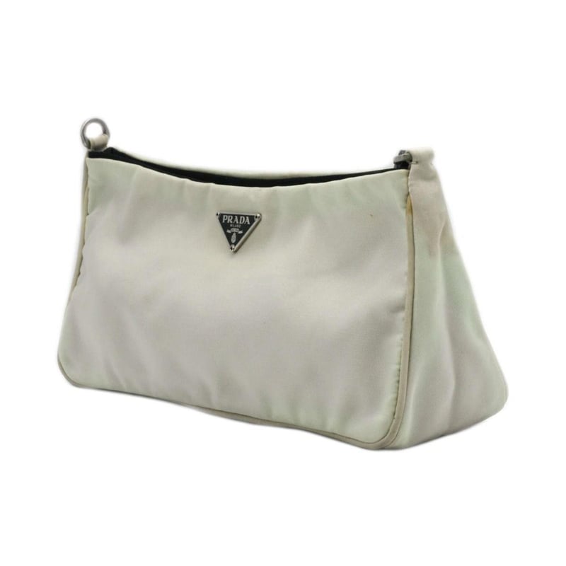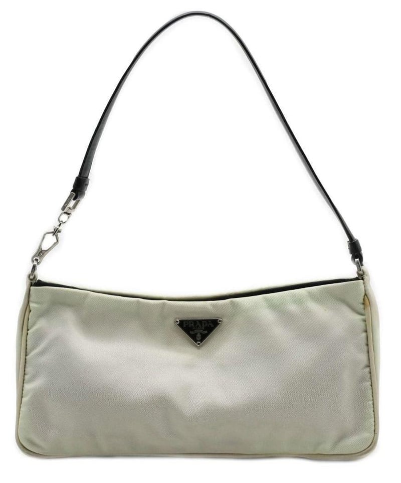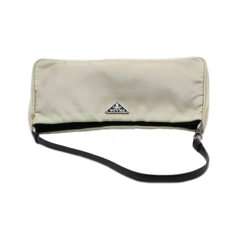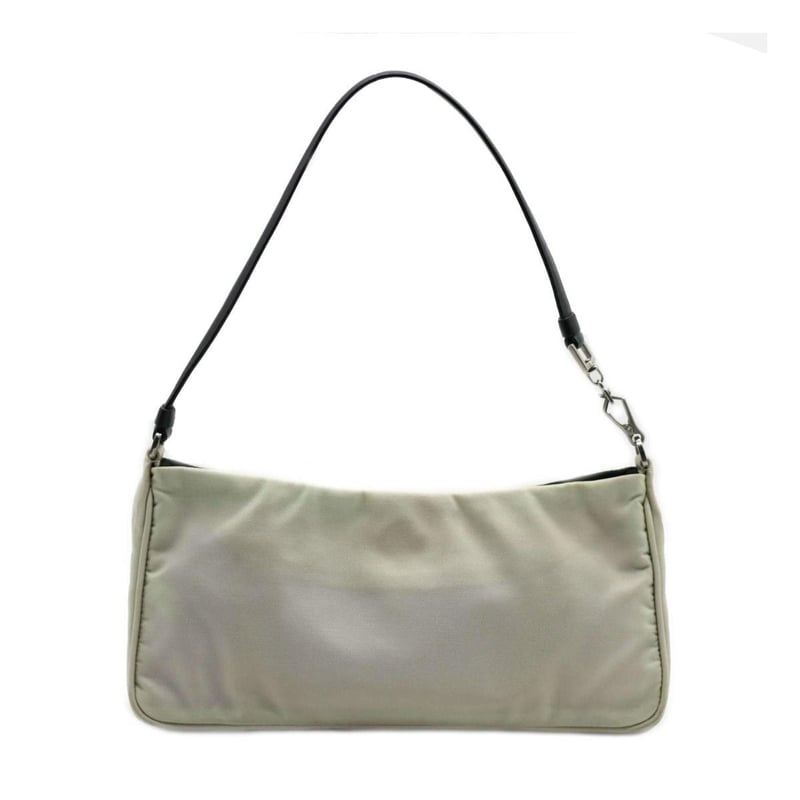 Nylon with silver-tone hardware, snap button closure and a shoulder strap.