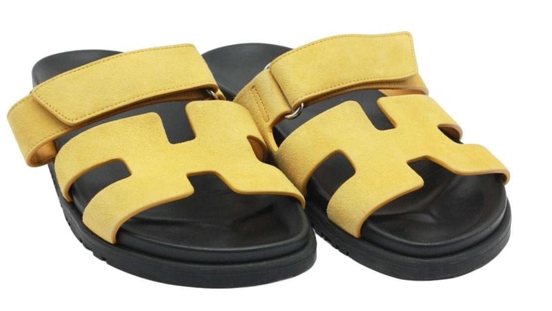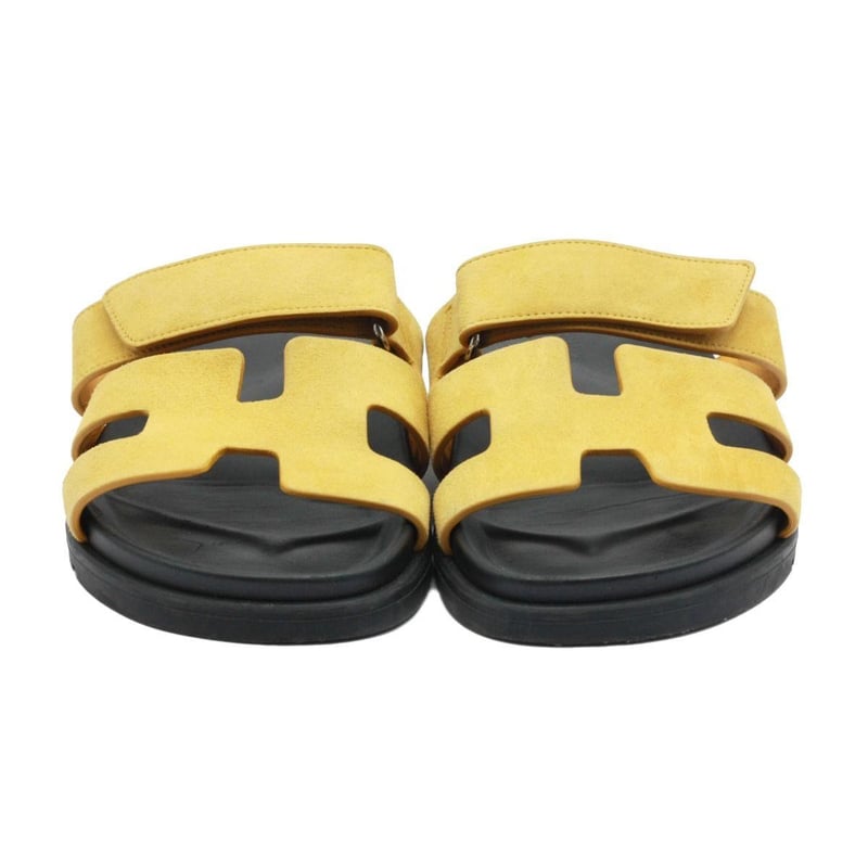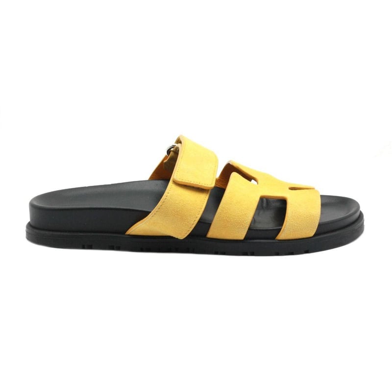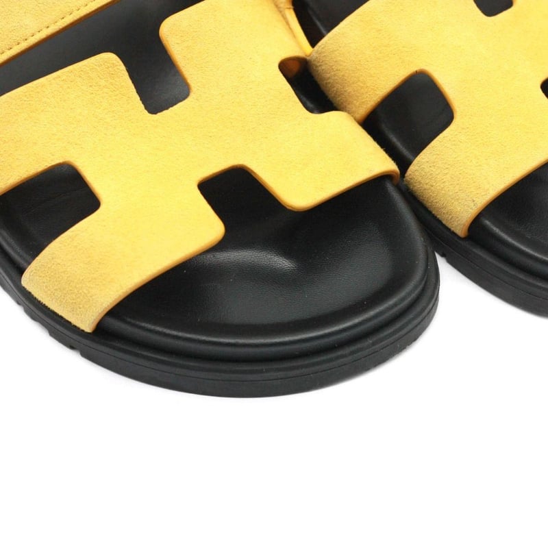 HERMES YELLOW SUEDE CHYPRE SANDALS SIZE 38.5