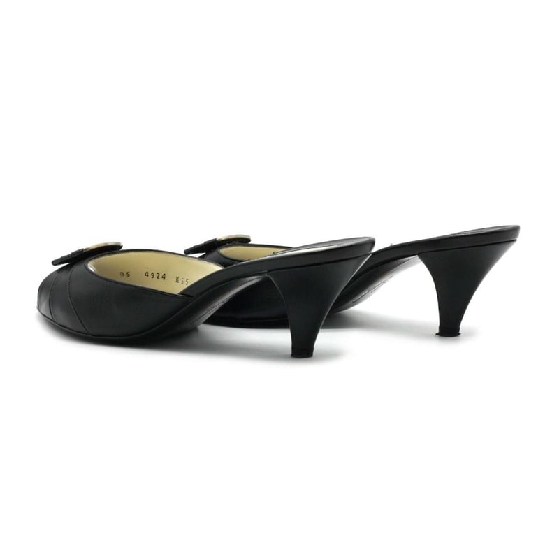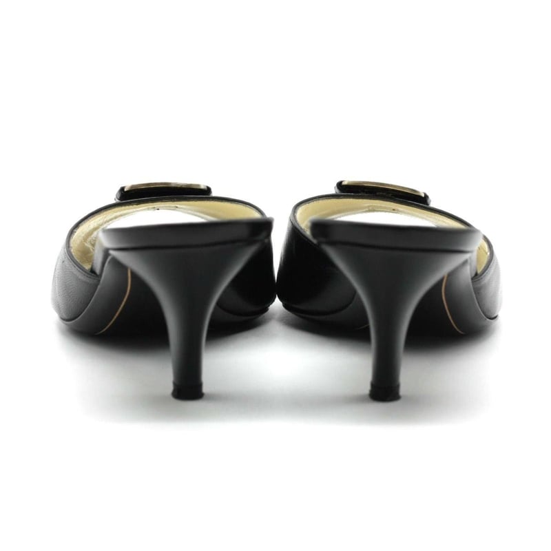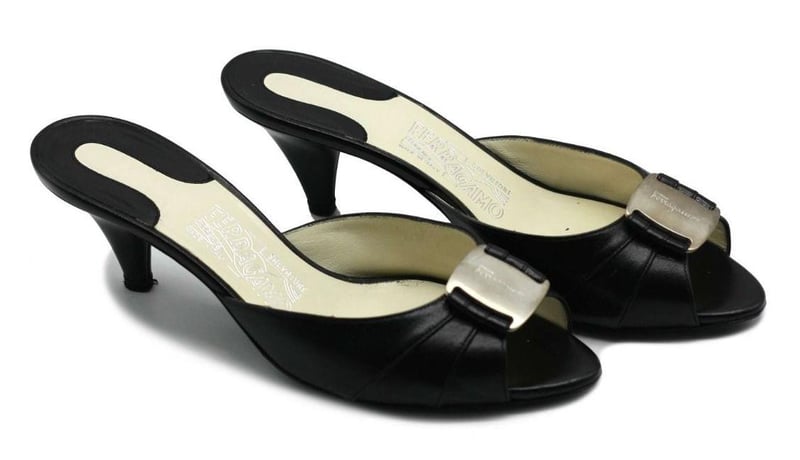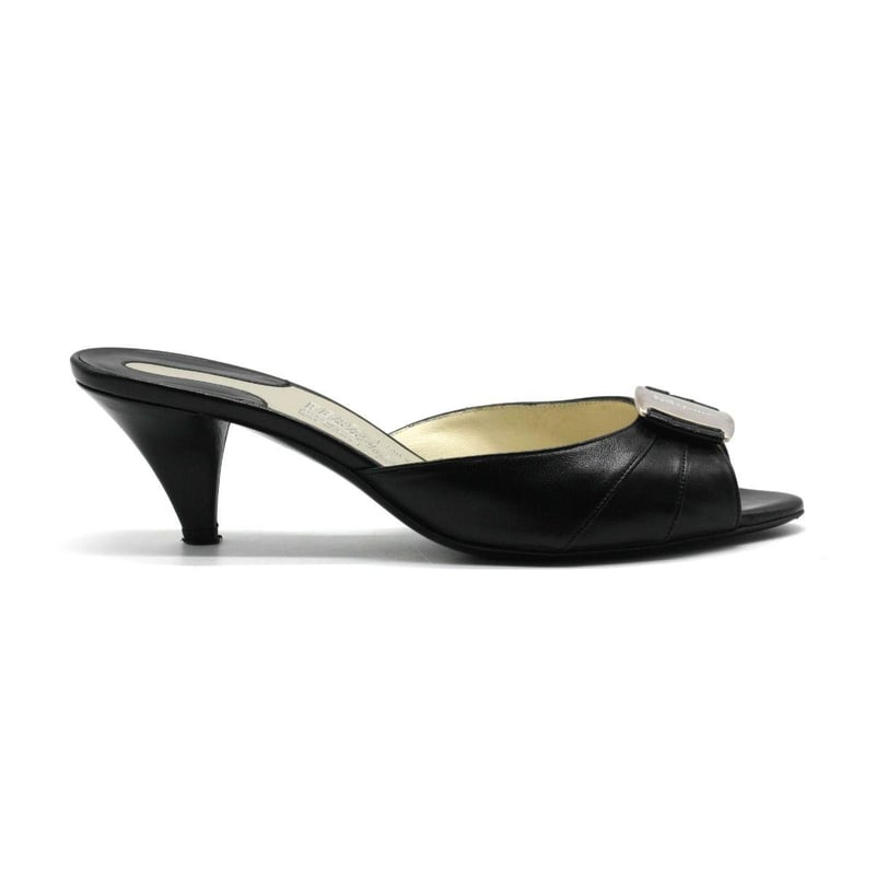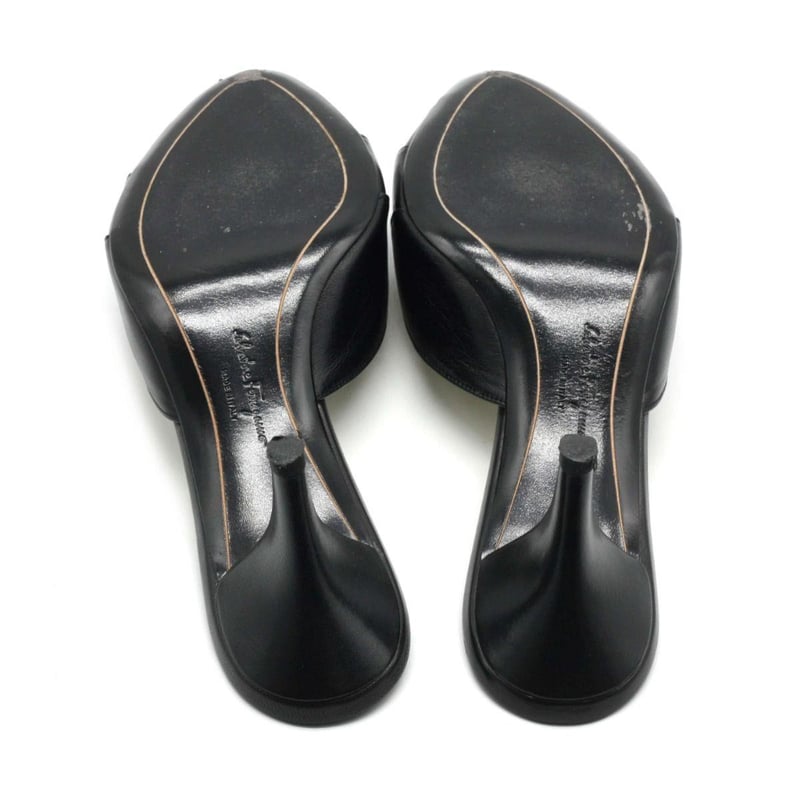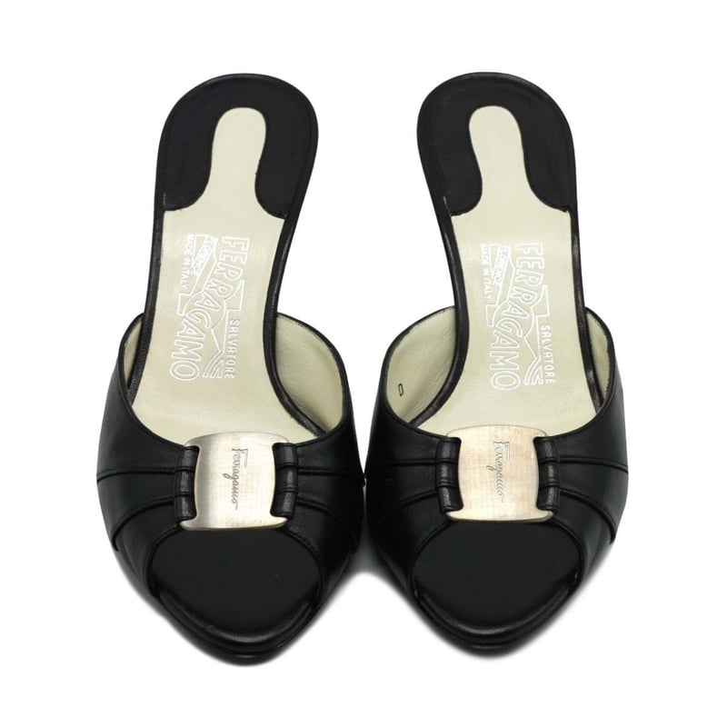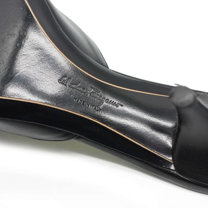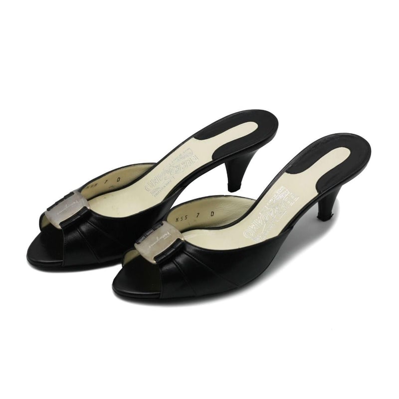 SALVATORE FERRAGAMO BLACK LEATHER VARA BOW HEEL SANDALS SIZE 7