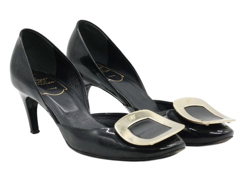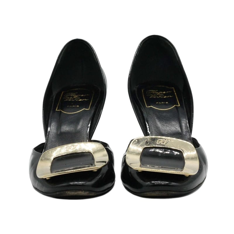 ROGER VIVIER BLACK PATENT LEATHER CHIPS D'ORSAY BUCKLE PUMPS SIZE 36