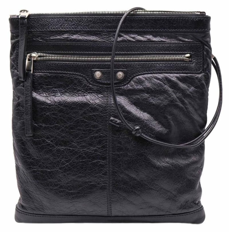BALENCIAGA BLACK LEATHER RH DAY MESSENGER BAG
