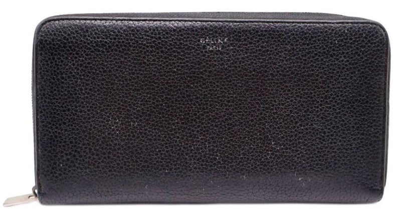 CELINE BLACK LEATHER ZIP AROUND WALLET