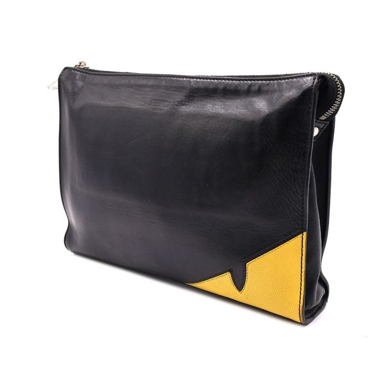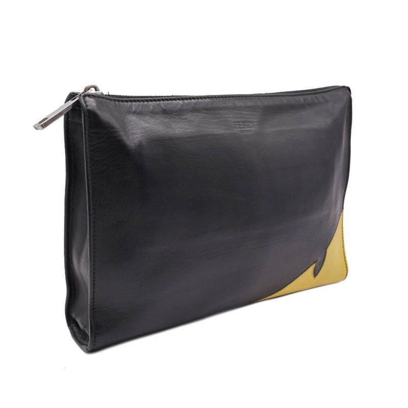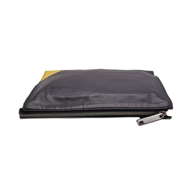 FENDI BLACK/YELLOW LEATHER CLUTCHItem Size: Height: 20cm, Width: 27cm, Depth: 4cmExterior MaterialLeather With Silver-Tone Hardware And Top Zip Closure.Interior MaterialTextile Lining With A Main Compartment, A Patchpocket And 8 Card Slots.Additional Condition Report- Moderate Sign Of Wear And Tears On Exterior- Minor Wear In Interior- Sign Of Wear And Scratches On HardwareComes With- Certificate Of AuthenticityCROSS DOCK155512+40