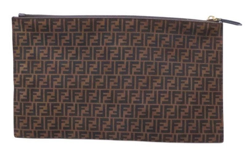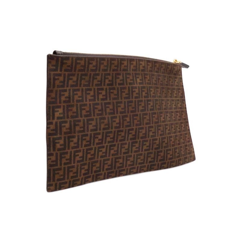 FENDI TOBACCO ZUCCA SUEDE FLAT POUCH