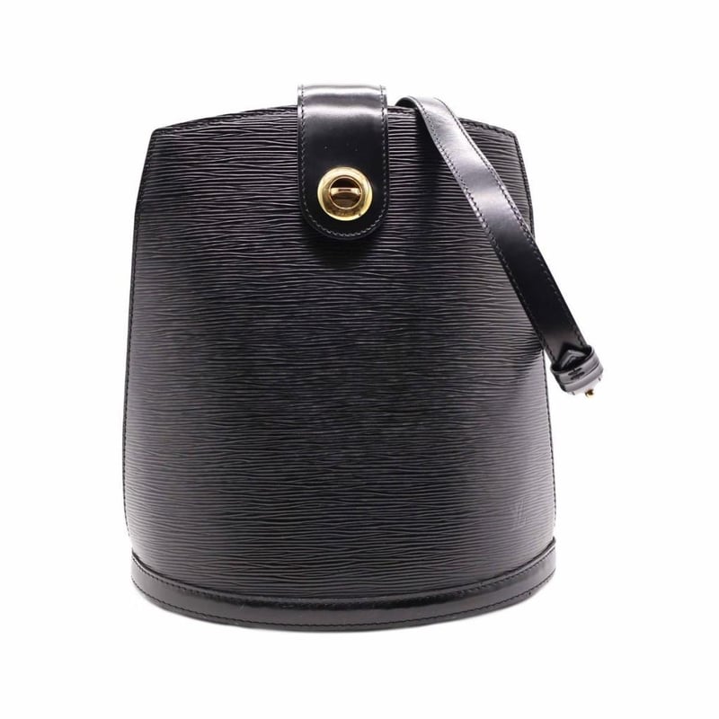 LOUIS VUITTON BLACK EPI LEATHER CLUNY BUCKET BAG Length: 26cm Height: 29cm Depth: 17cm Strap Drop: 38cm Adjustable Exterior Material Epi leather with gold-tone hardware, turn-lock closure and a shoulder strap. Interior Material Alcantara lining with a main compartment and a slip pocket. Additional Condition Report - Minor sign of wear and tears on exterior - Minor scuffs on exterior corners - Visible stains and wear in interior - Sign of wear and scratches on hardware Comes With - Original Dustbag - Receipt CROSSED DOCKED 162838+34