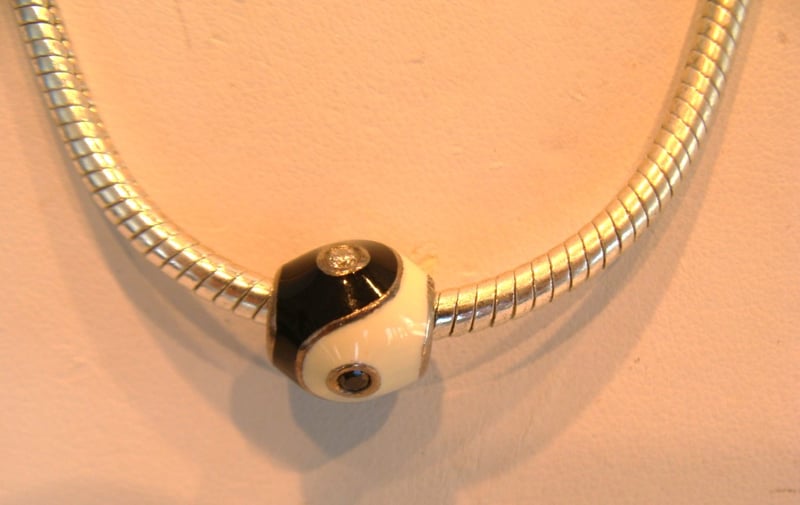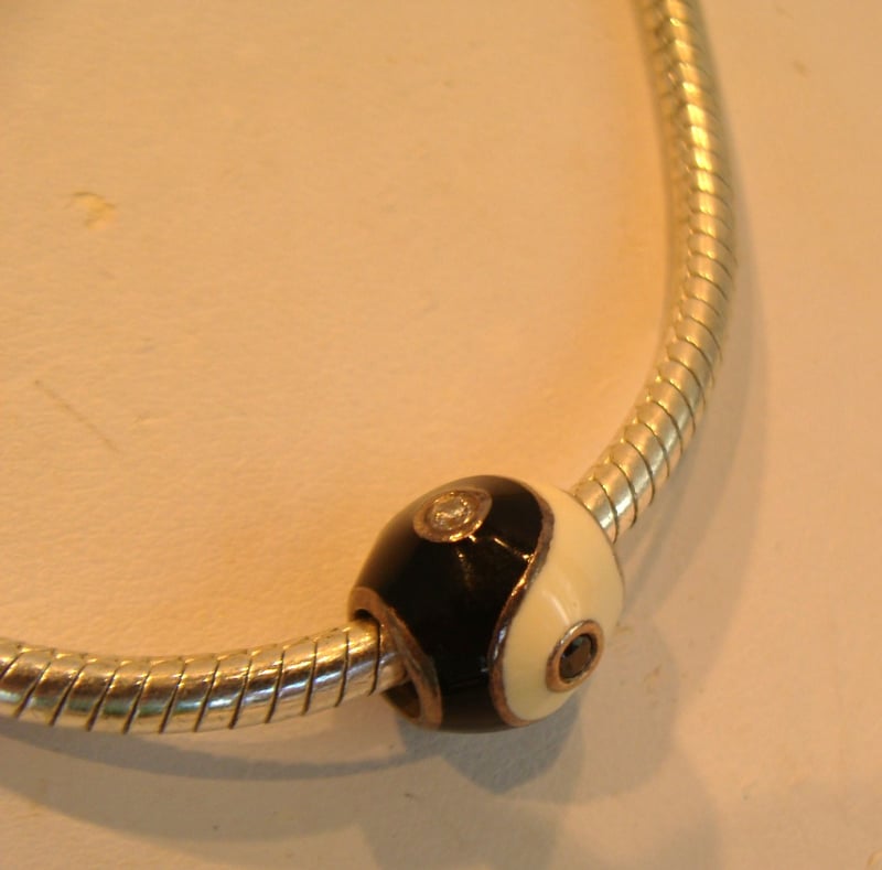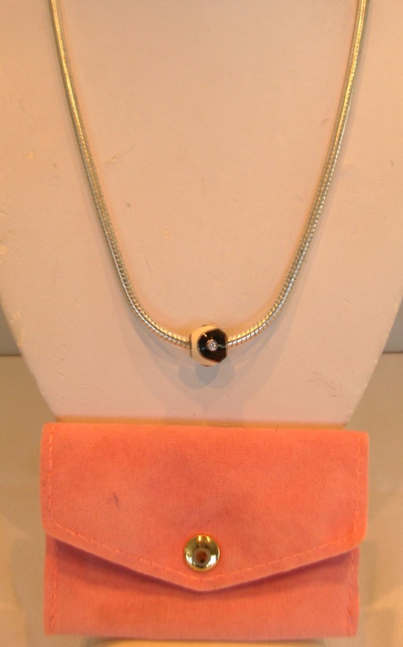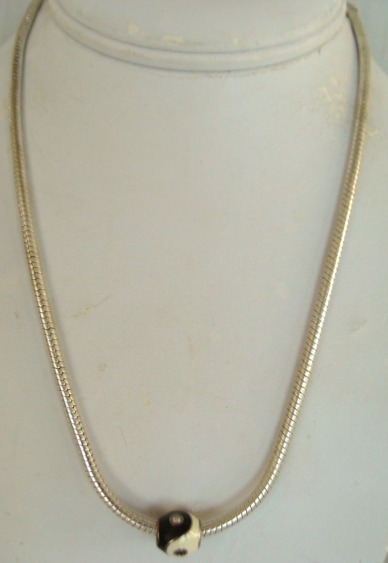 PANDORA YIN YANG 925 ALE CHARM ON STERLING SILVER 925 SNAKE CHAIN NECKLACE 46CM LONG WITH PANDORA POUCH