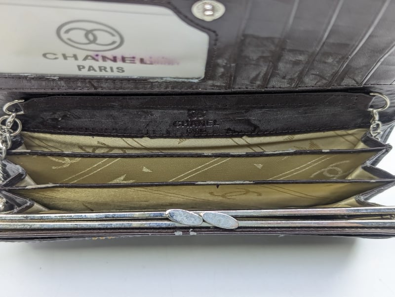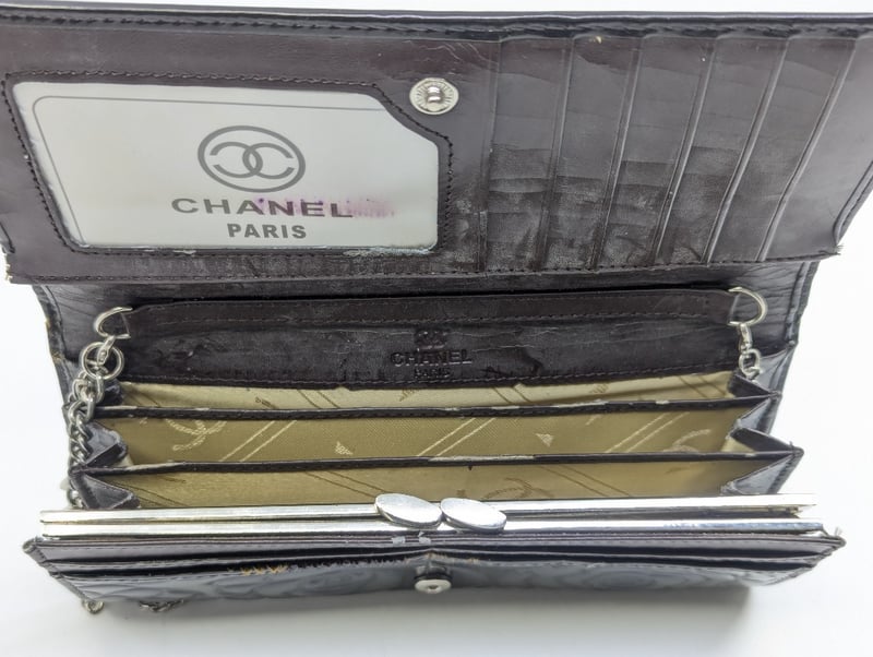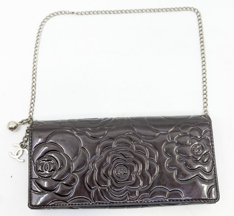 SHOULDER PURSEItem Size: Height: 10cm, Width: 19cm, Depth: 3cmDarkpurple Leather Style Exterior With Floral Style Design, Single Chain Strap, Flap Cover, Multiple Interior Pockets And Card Slots586263+3