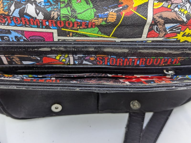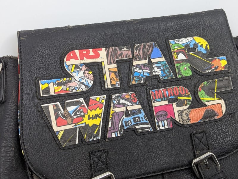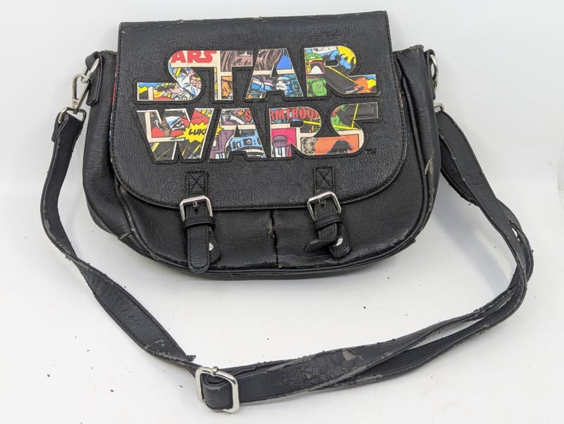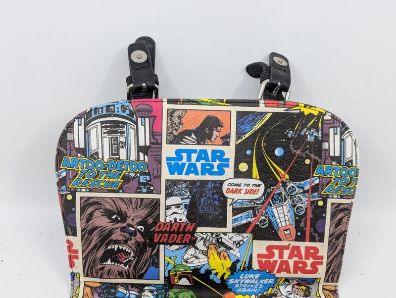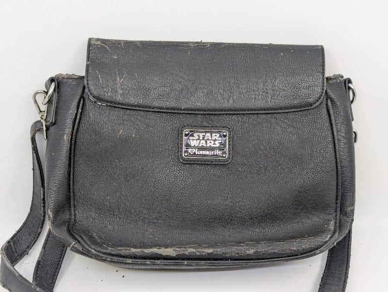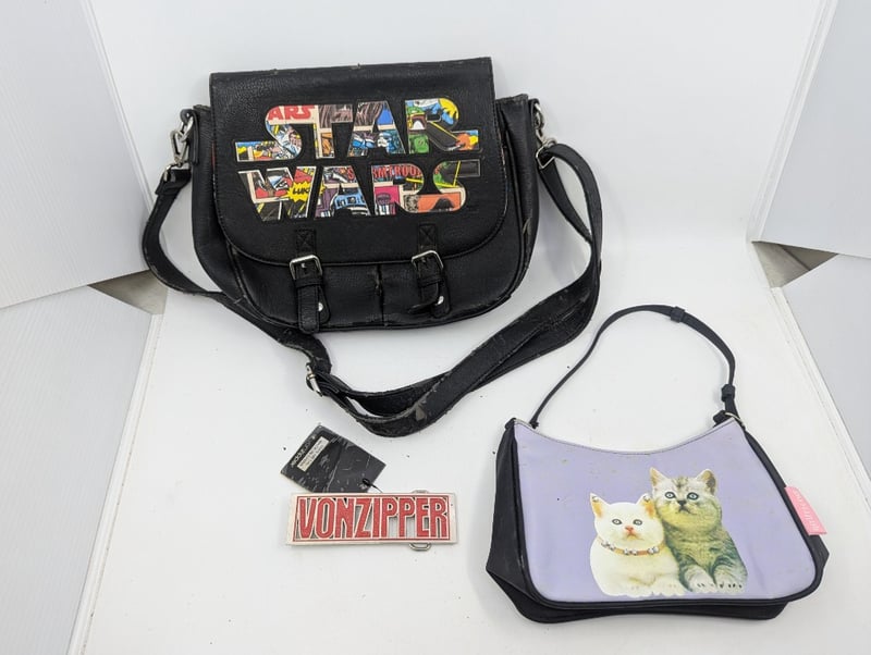 LOUNGEFLY STAR WARS BAG, VONZIPPER BELT BUCKLE AND GIRLFRIEND BAG WITH CAT IMAGERYStar Wars Bag Features Single Strap With Flap Closure, Bag Size Approx: 23Cm H X 31Cm W, Exterior Of Star Wars Bag Flaking586263+4