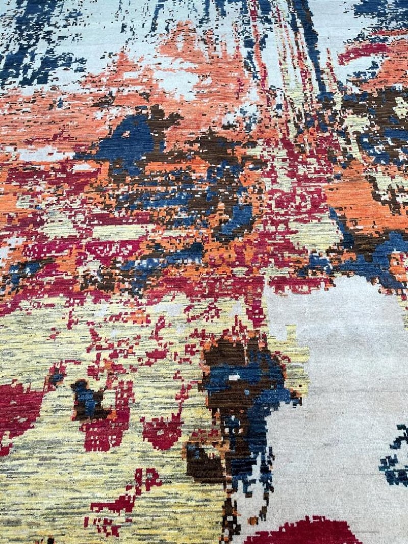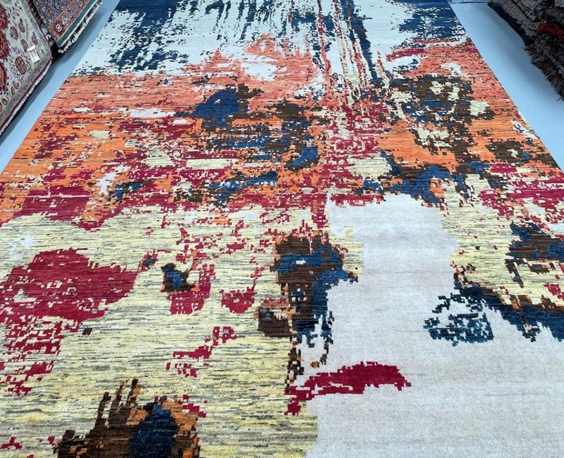 Large Room Size Wool Contemporary Hand Knotted Afghan Chobi Rug 380X285Cm Afghanistan