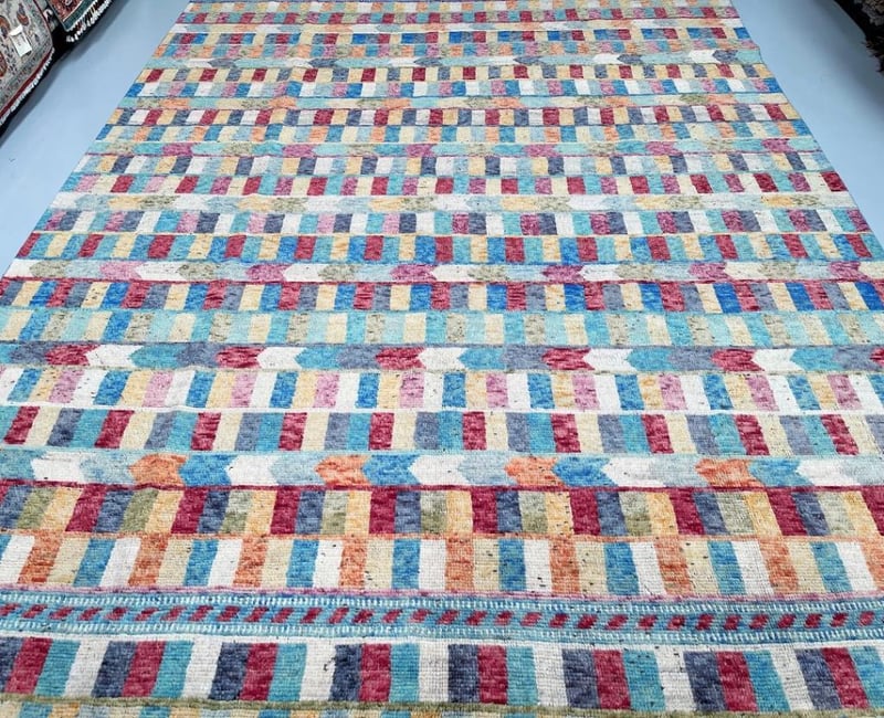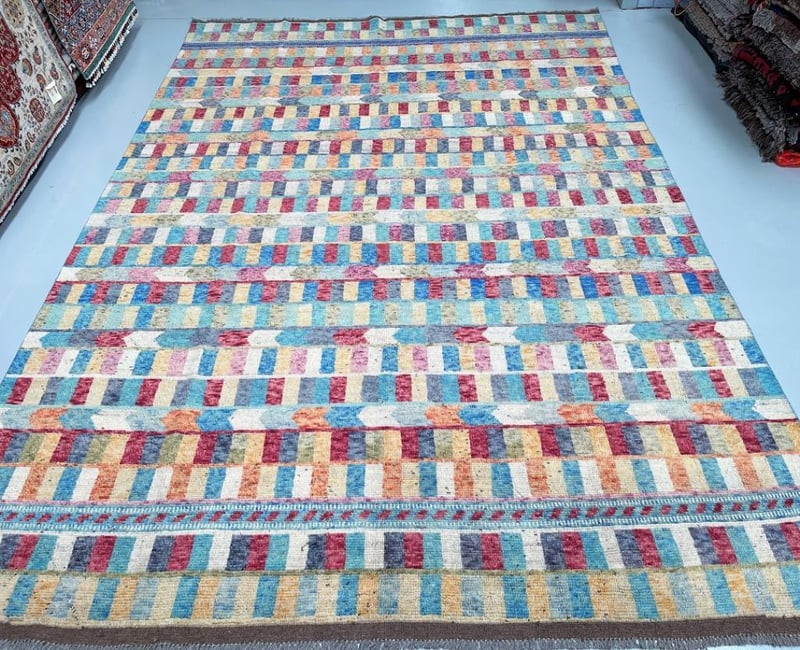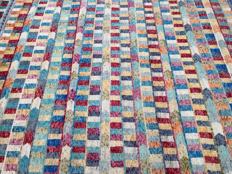 Large Room Size Wool Boho Hand Knotted Afghan Gabbeh Rug 341X250Cm Afghanistan