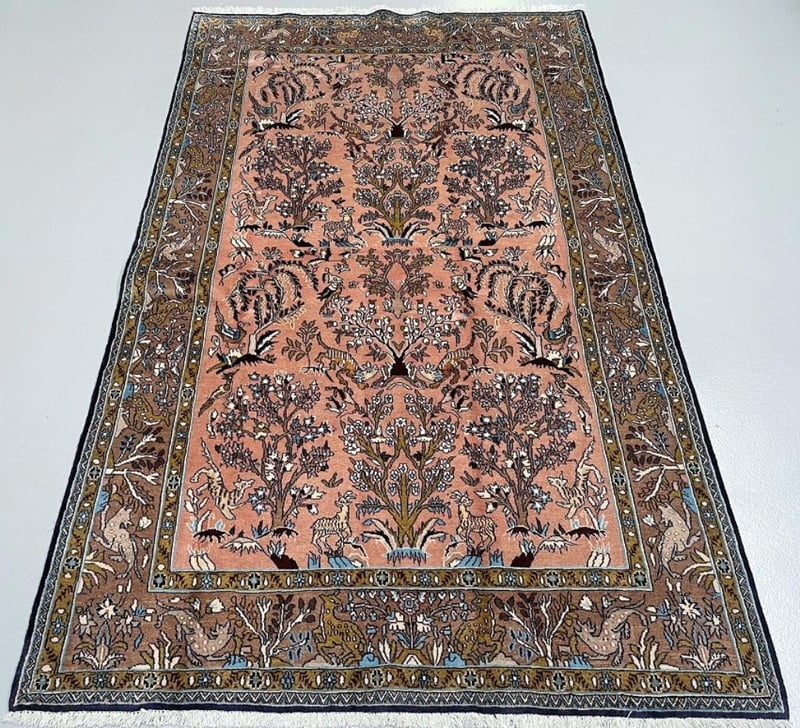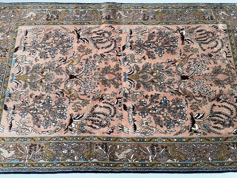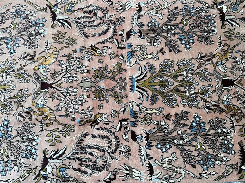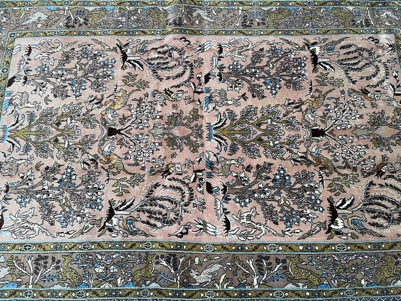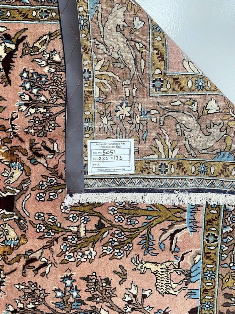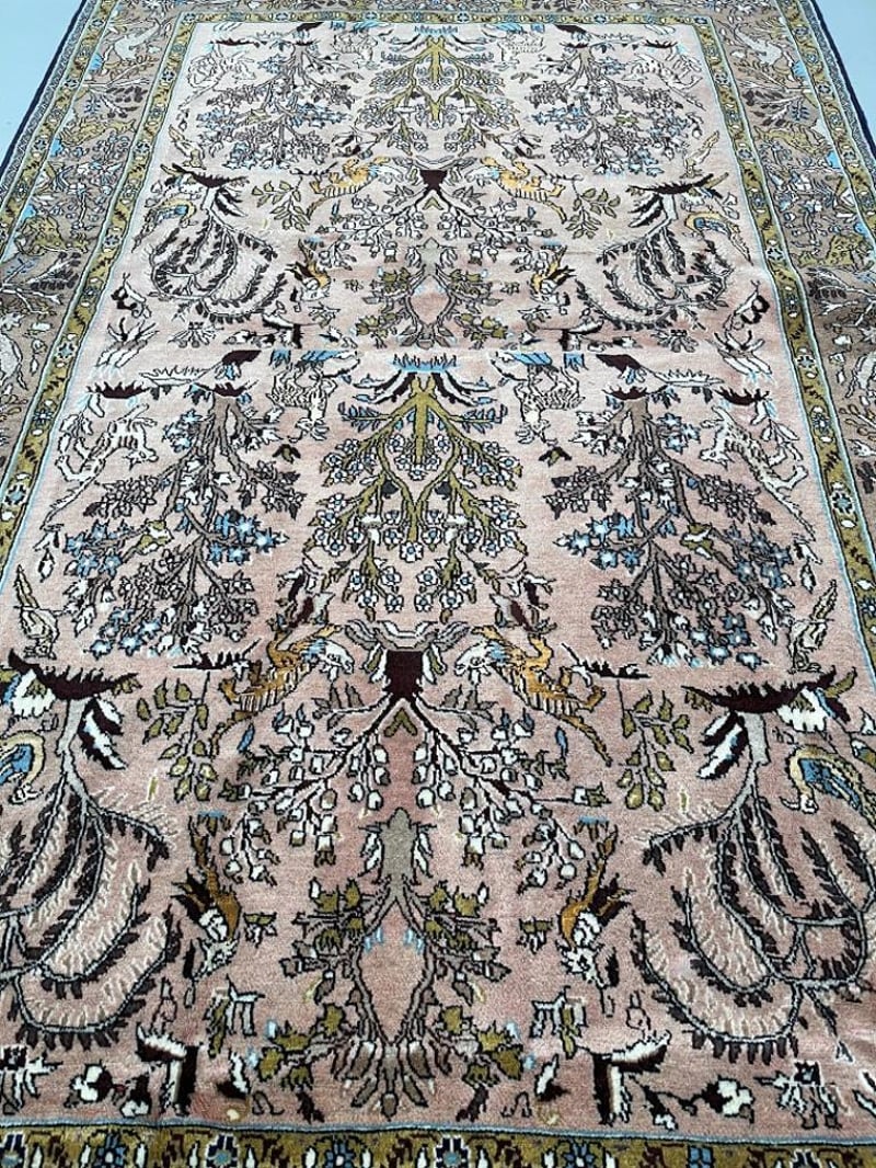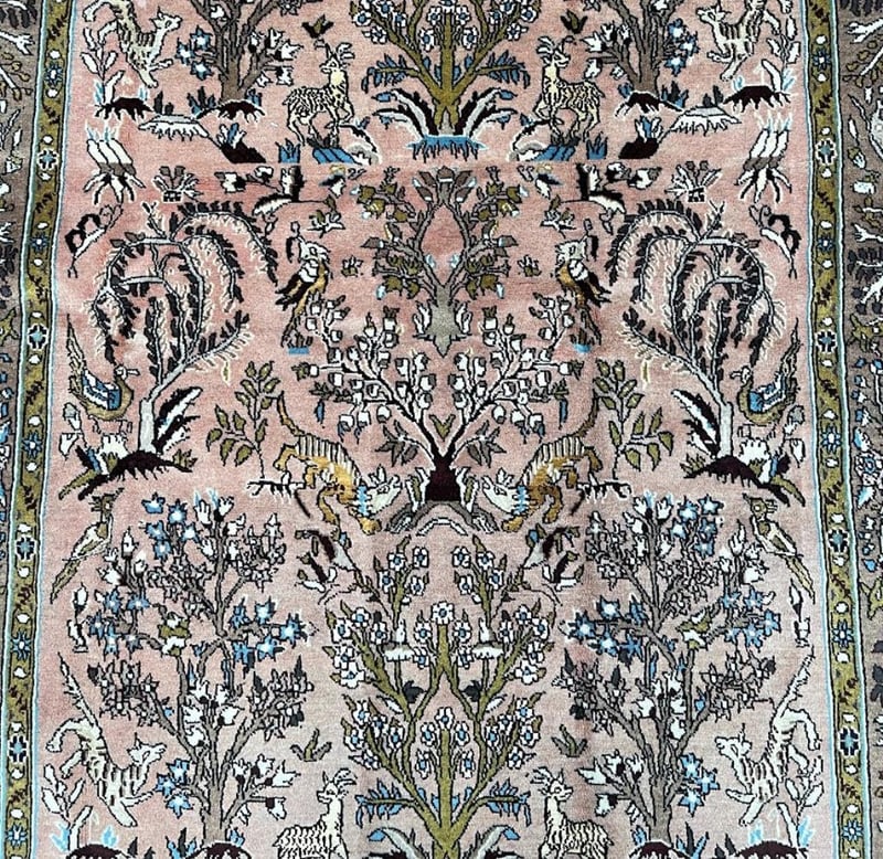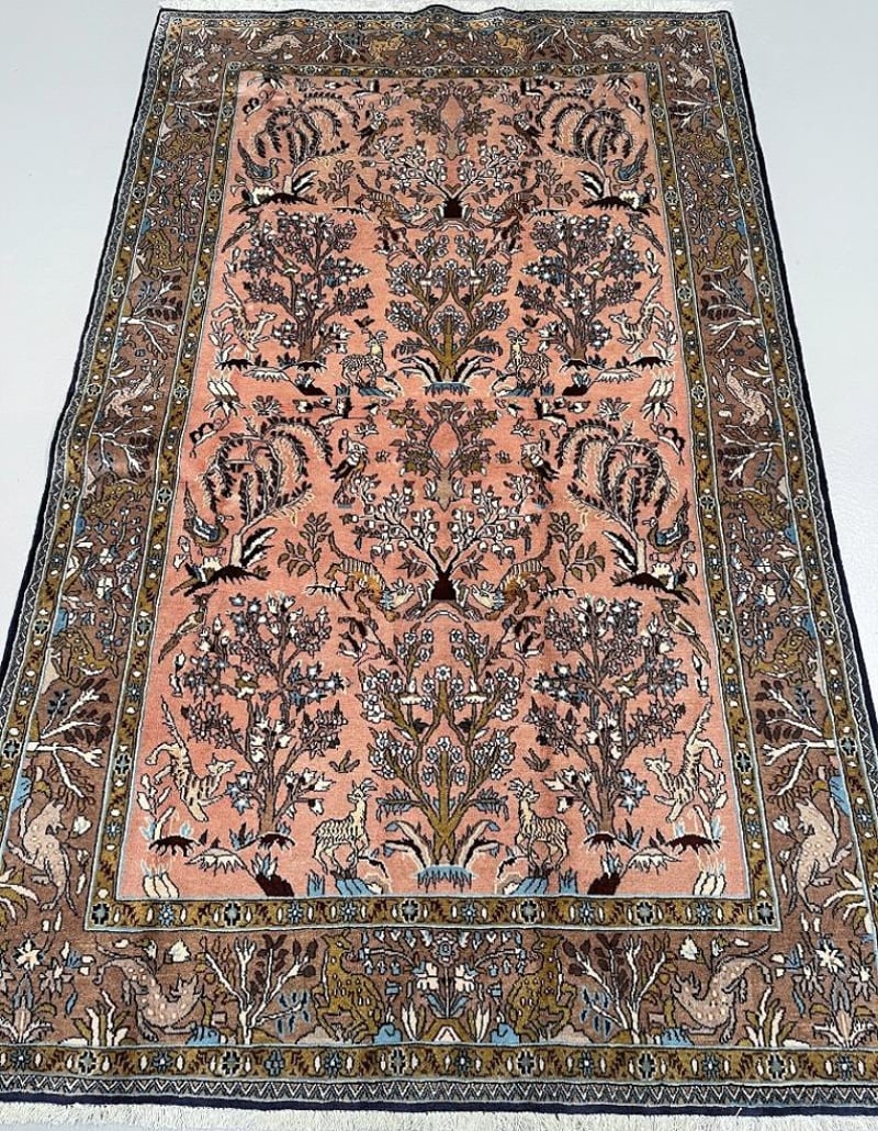Superfine Wool & Silk Garden Of Paradise Hand Knotted Persian Qum Rug 220X135Cm Central Persia+19