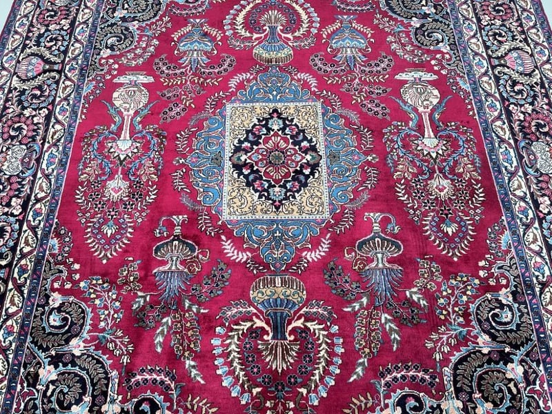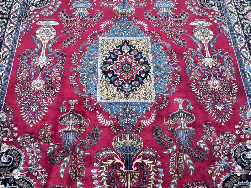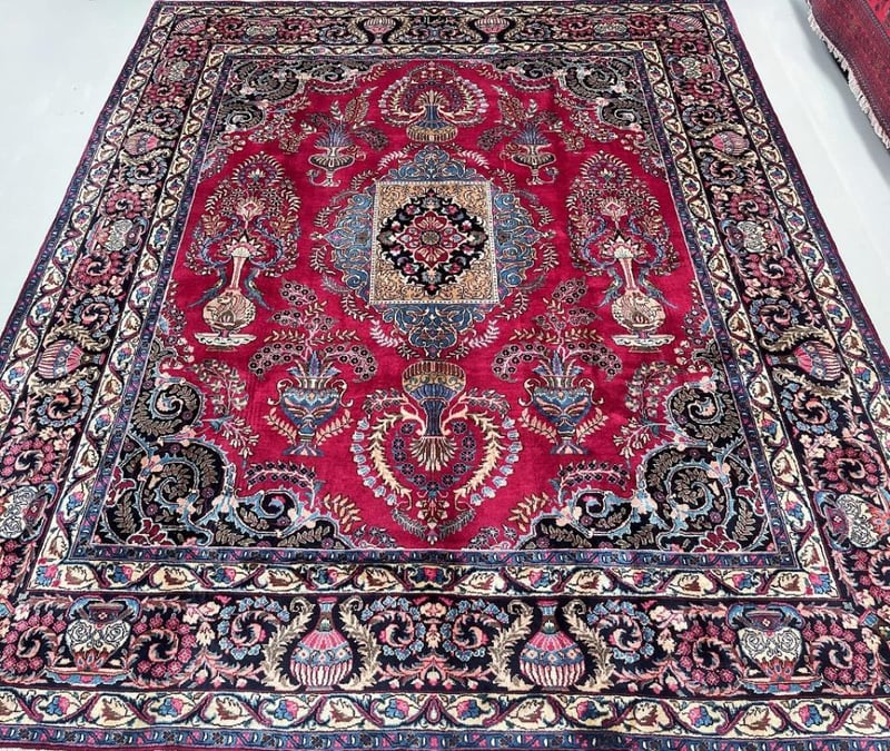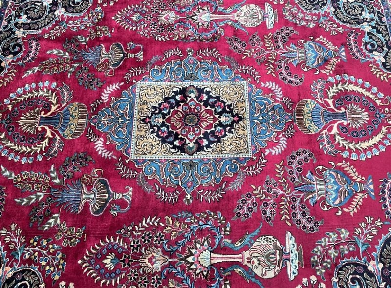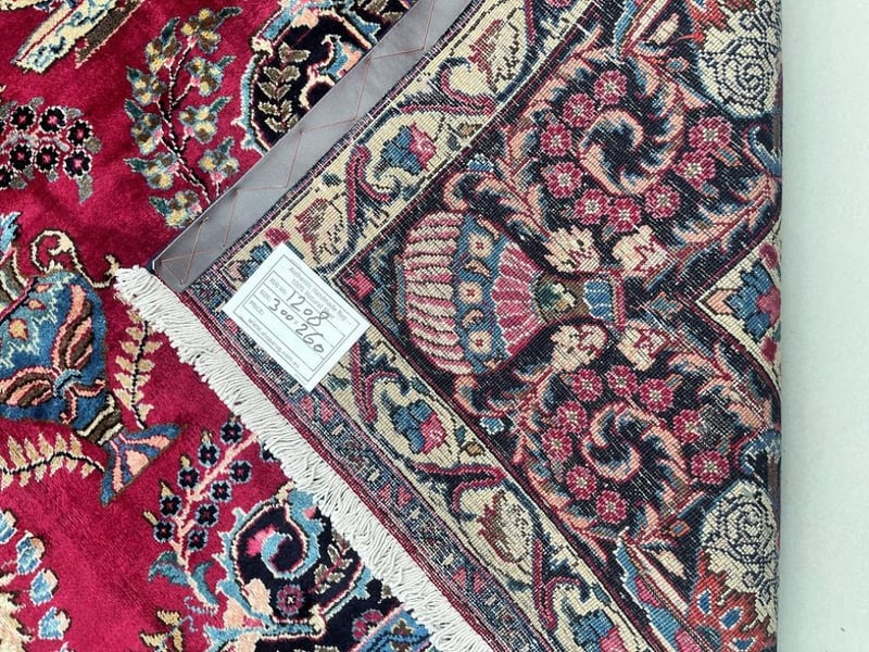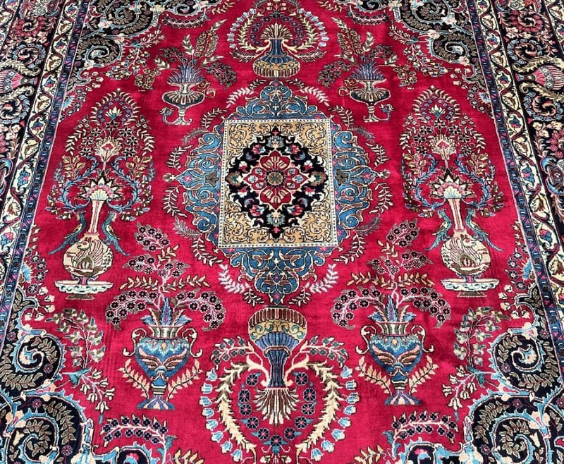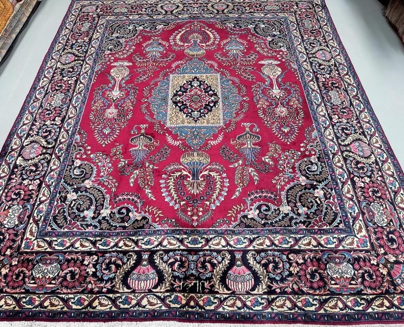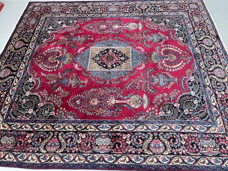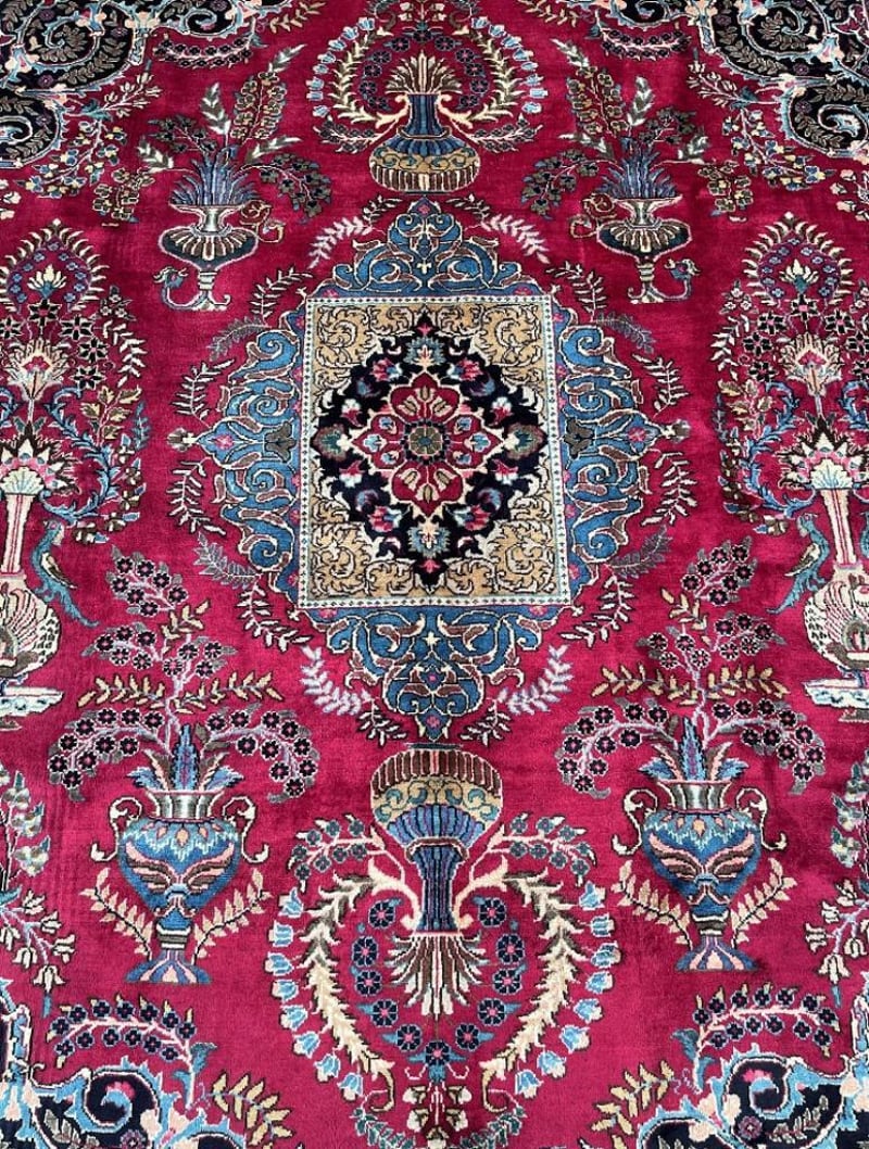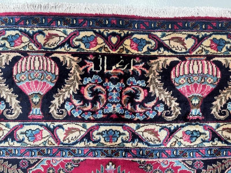 Large Room Size Wool Vase Design Hand Knotted Persian Mashad Rug Signed 300X260Cm East Persia