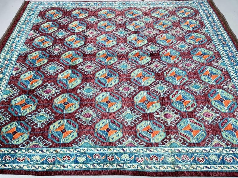 Large Room Size Wool Bokhara Design Hand Knotted Afghan Gabbeh Rug 286X248Cm Afghanistan