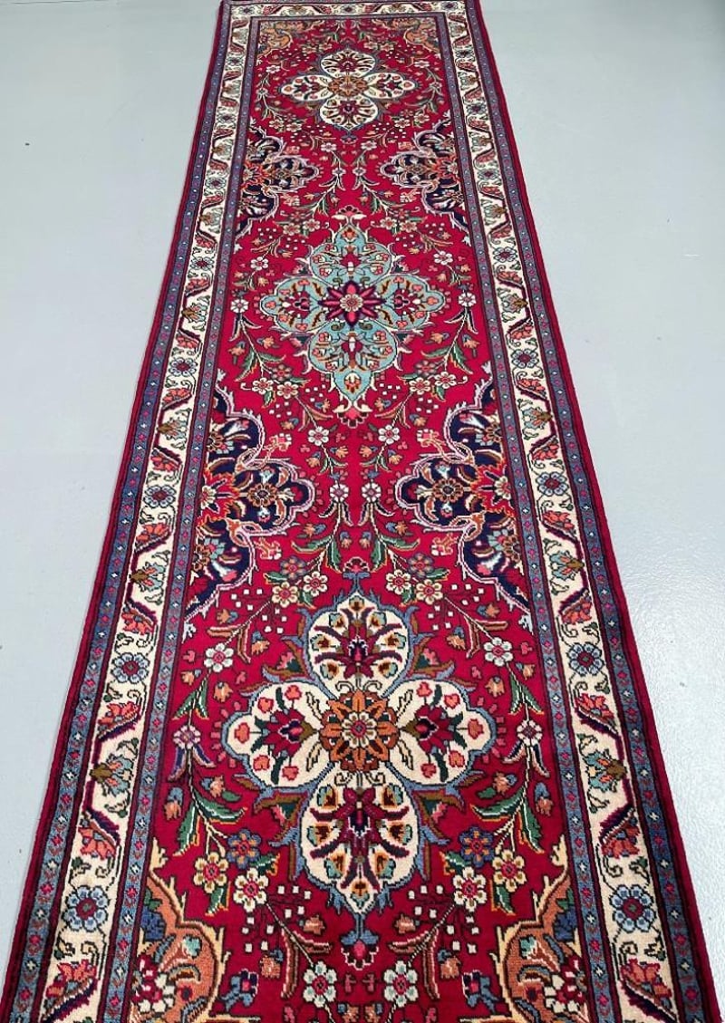 Traditional Lamb'S Wool Hand Knotted Persian Tabriz Hall Runner Rug 350X80Cm North West Persia