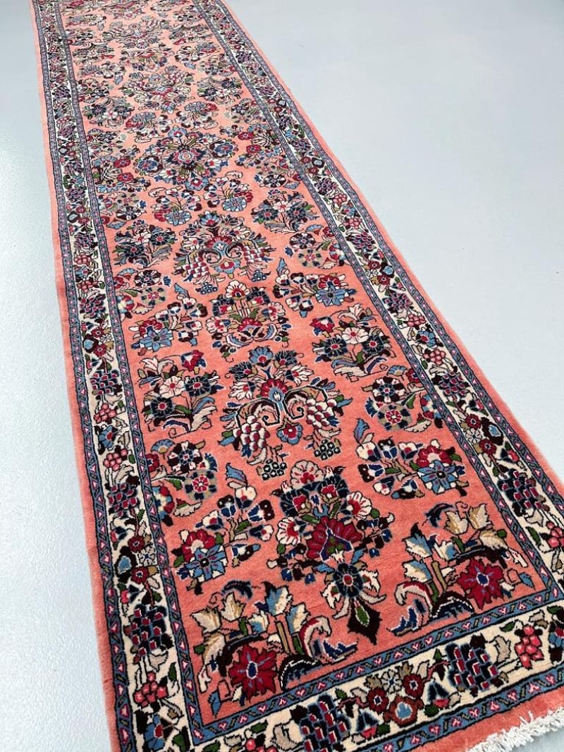 Traditional Lamb'S Wool Hand Knotted Persian Sarough Hall Runner Rug 328X80Cm Central Persia+74