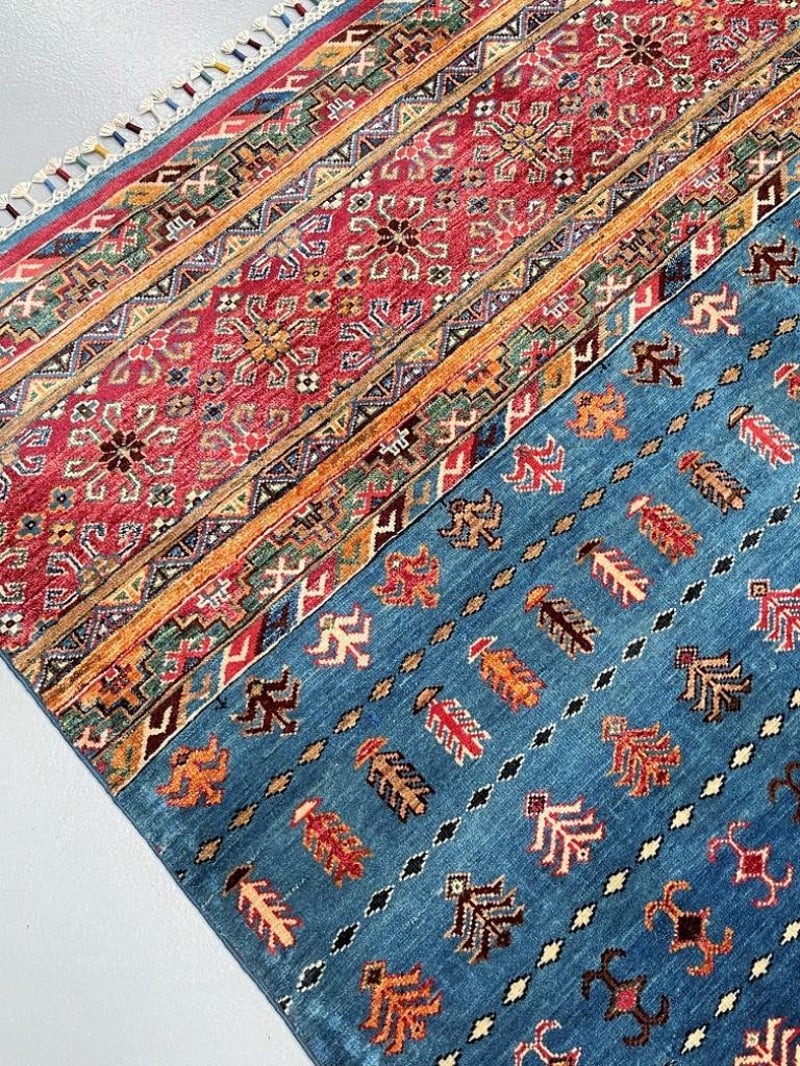 Shawl Design Lamb'S Wool Hand Knotted Afghan Super Kazak Rug 189X152Cm Afghanistan