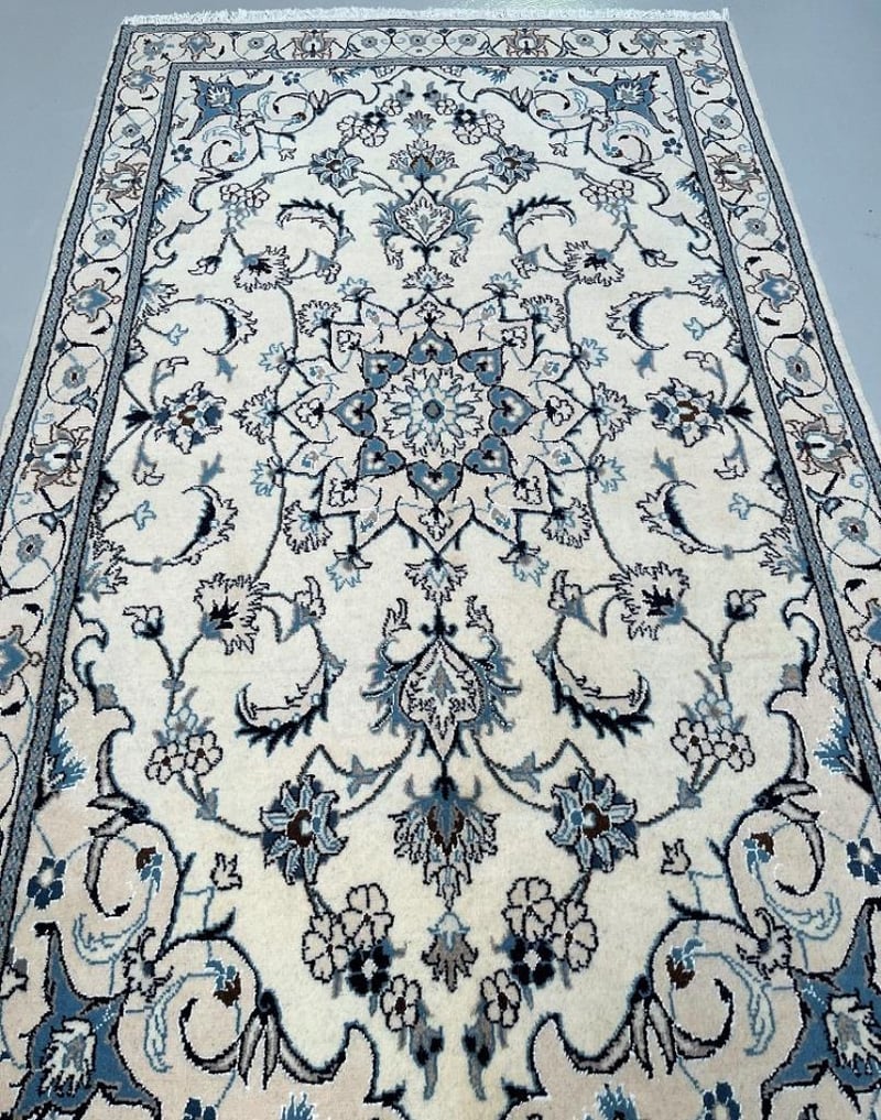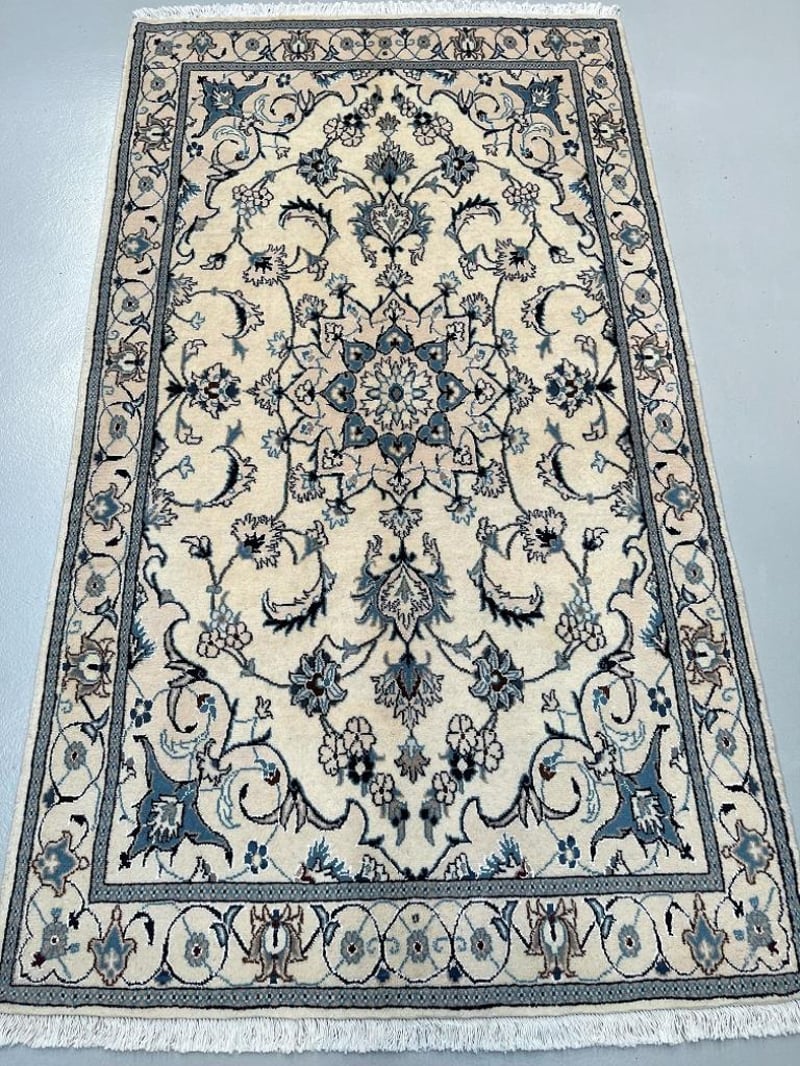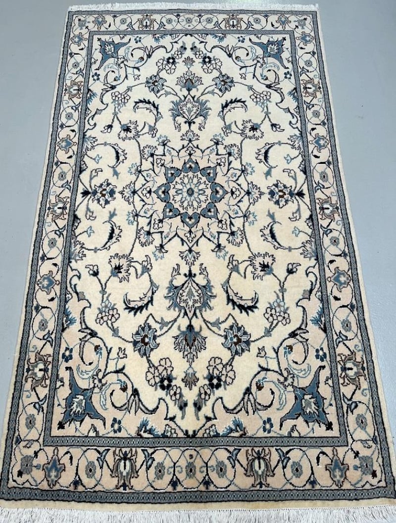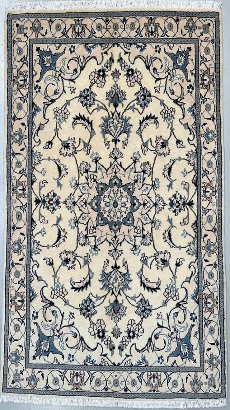 Fine Pure Wool Hand Knotted Persian Nain Rug 207X117Cm Central Persia