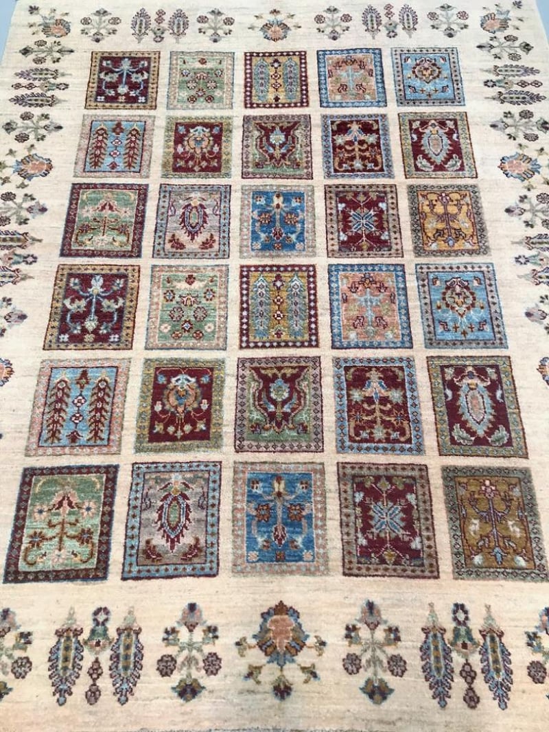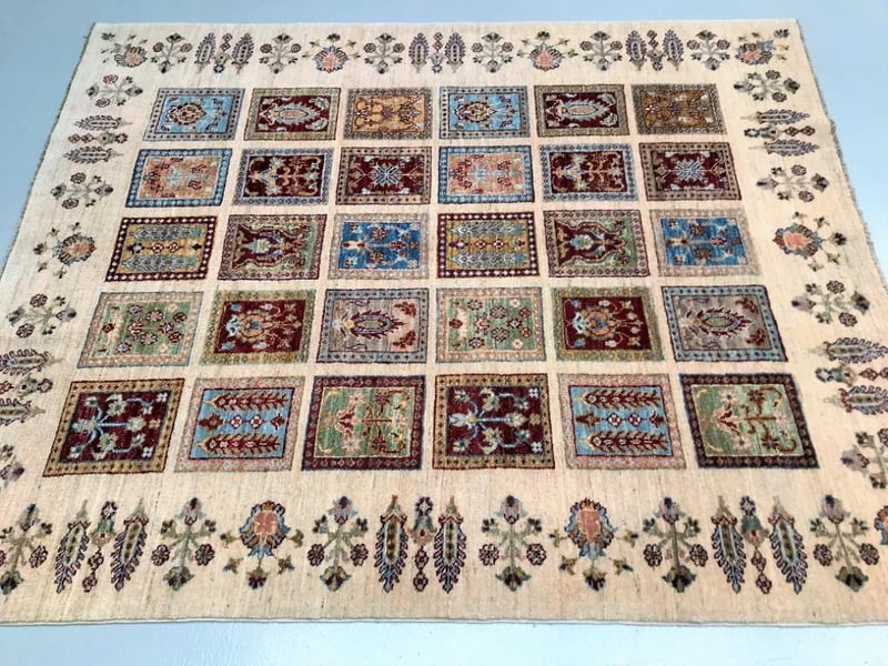 Garden Design Wool Hand Knotted Afghan Super Kazak Rug 194X159Cm Afghanistan