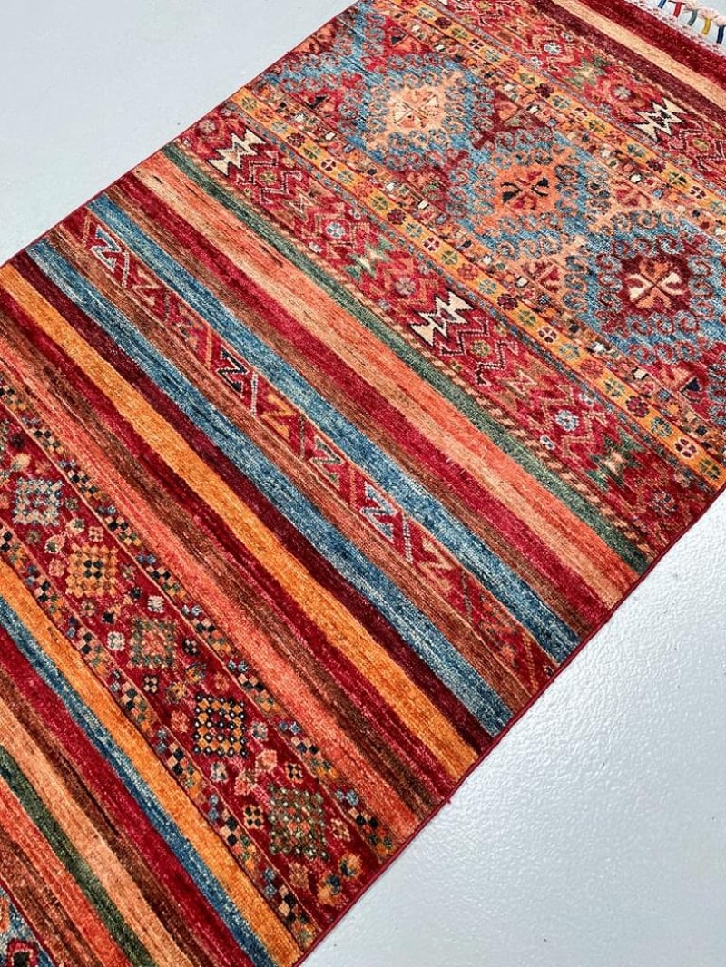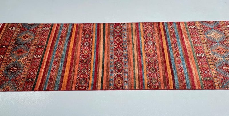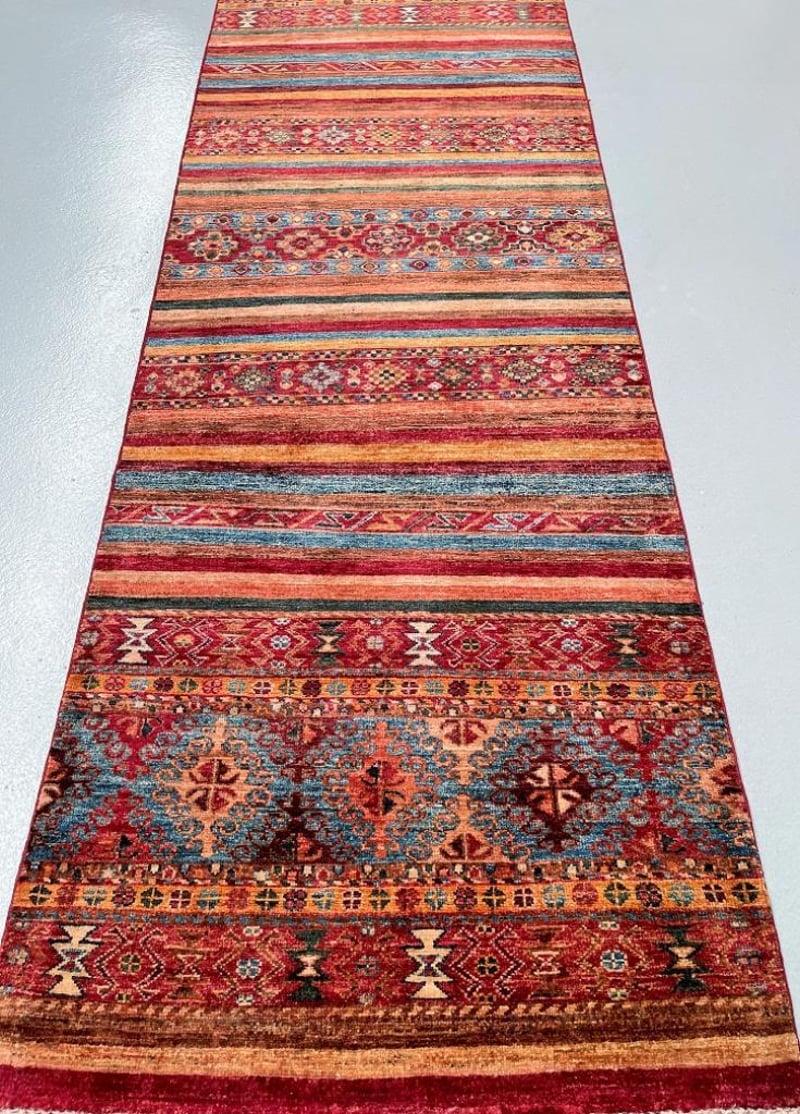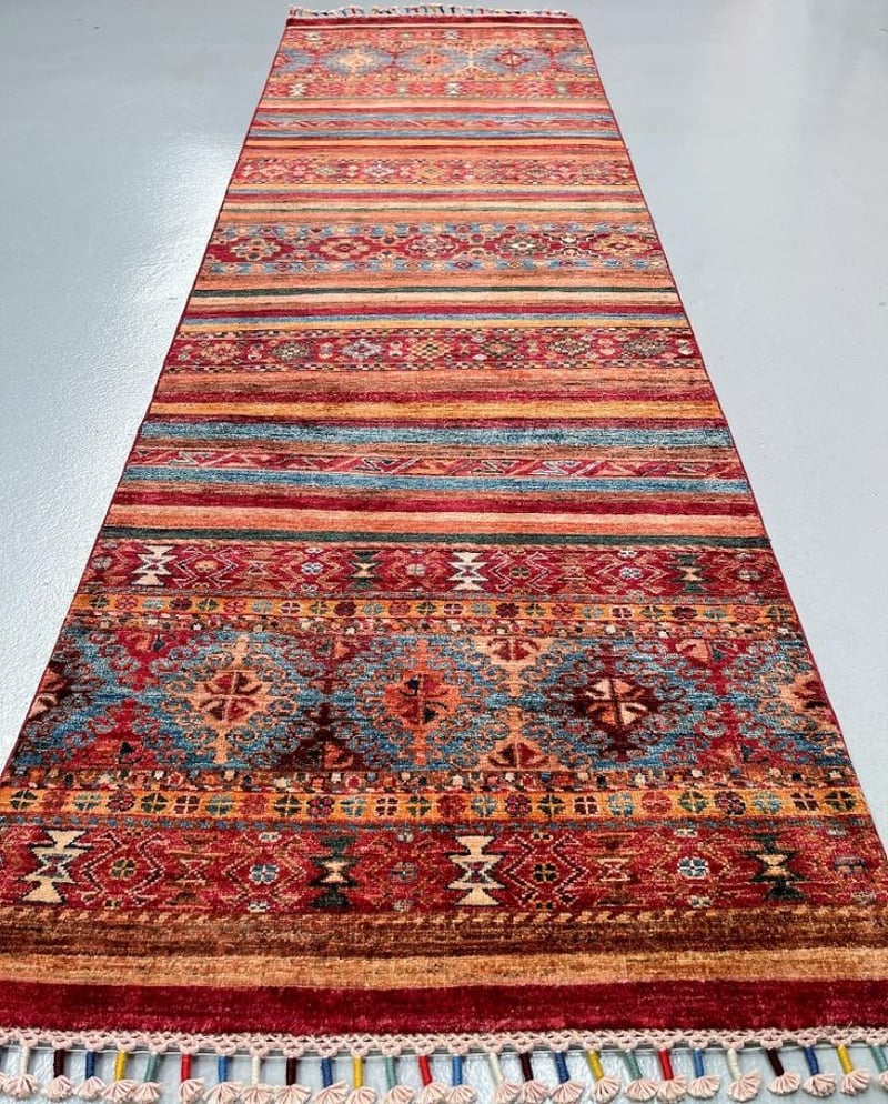 Shawl Design Lamb'S Wool Hand Knotted Afghan Super Kazak Hall Runner Rug 272X82Cm Afghanistan