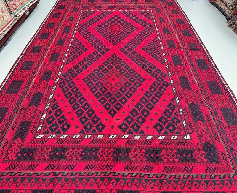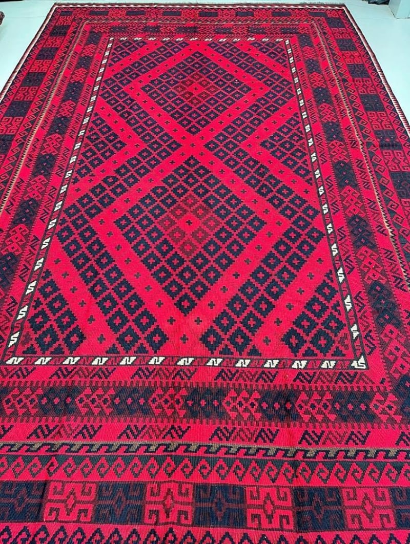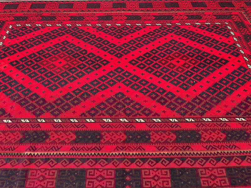 Large Room Size Pure Wool Hand Woven Afghan Meymana Kilim Rug 389X252Cm Afghanistan