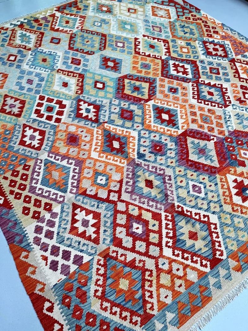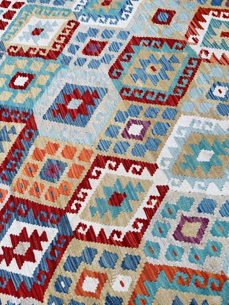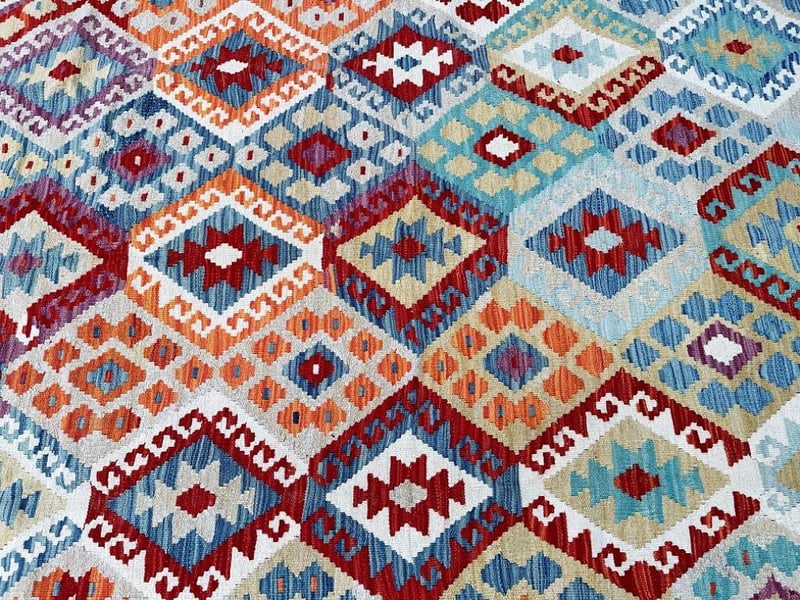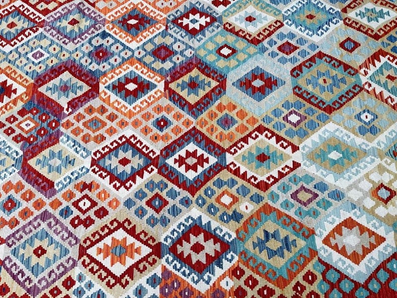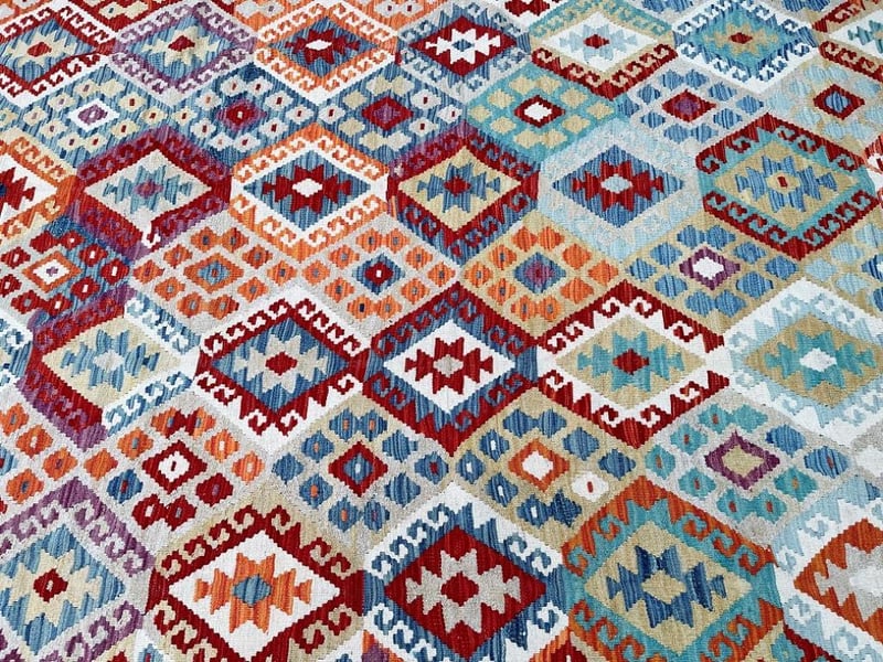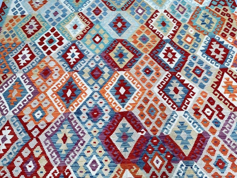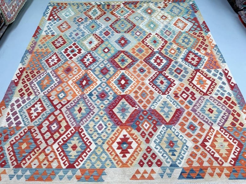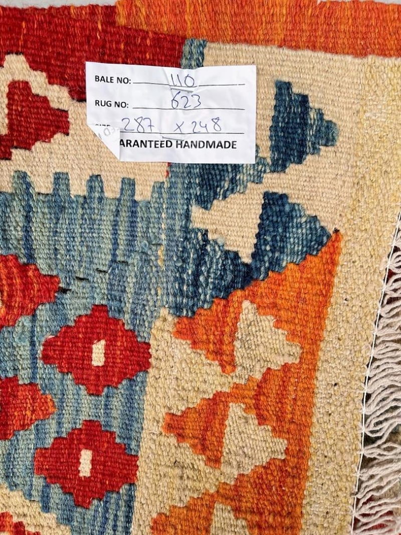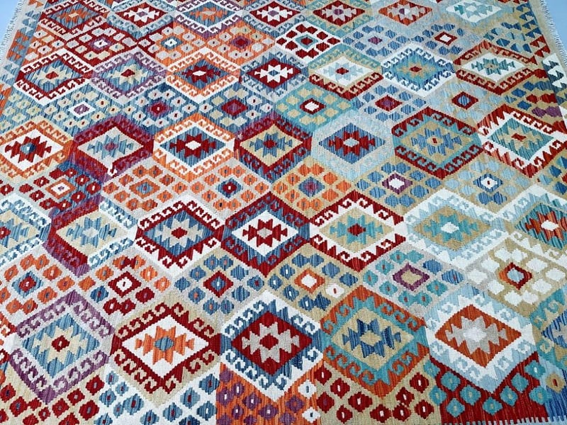 Large Room Size Wool Hand Woven Afghan Kyber Kilim Rug 287X248Cm Afghanistan