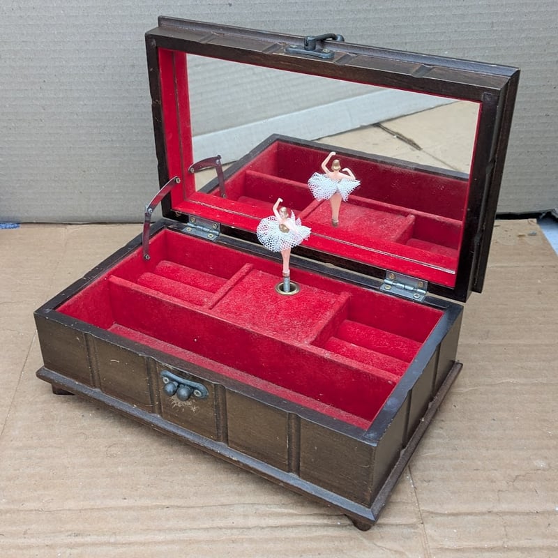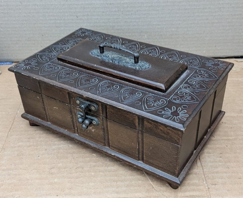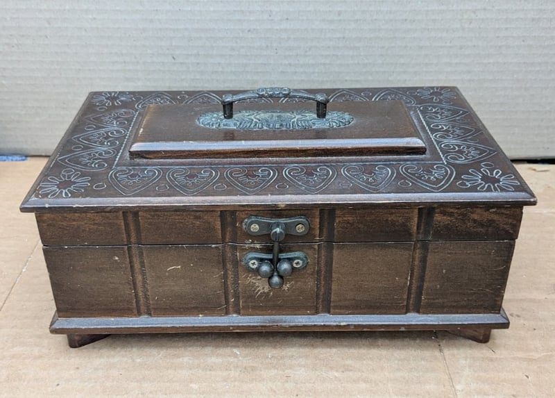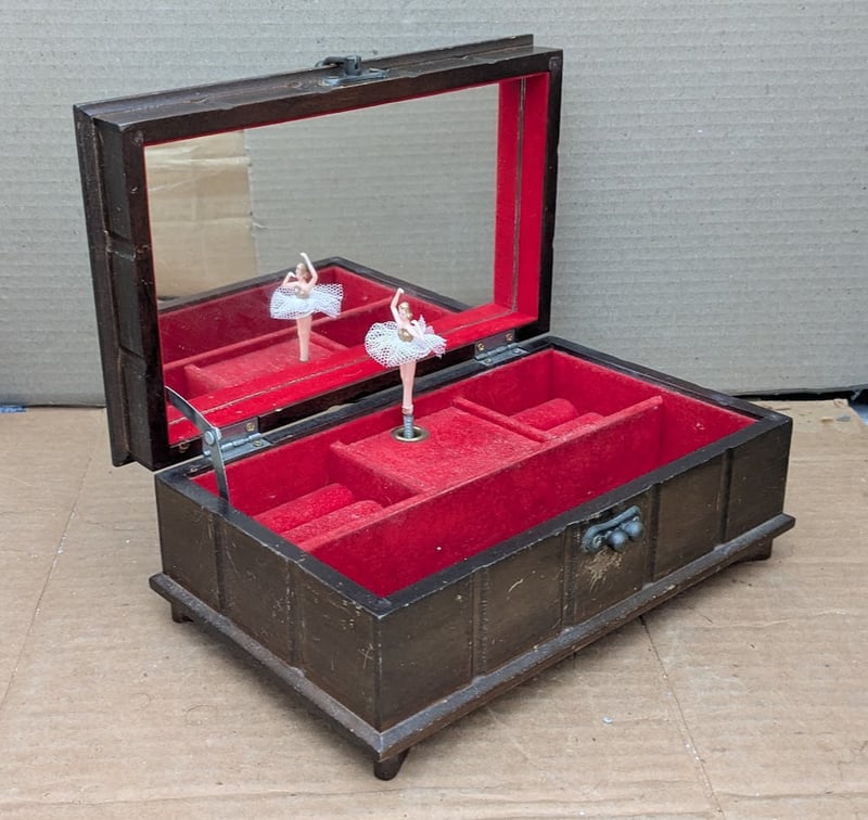 VINTAGE WOODEN CARVED WINDING MUSICAL JEWELLERY