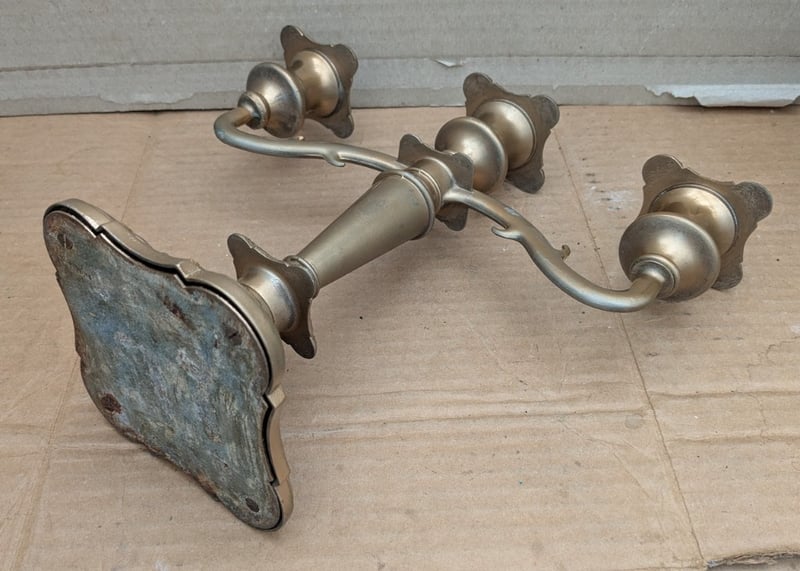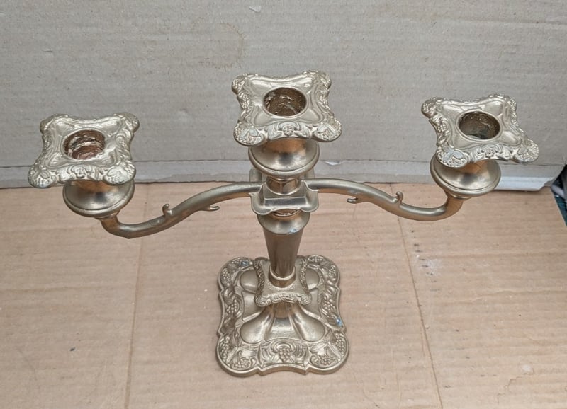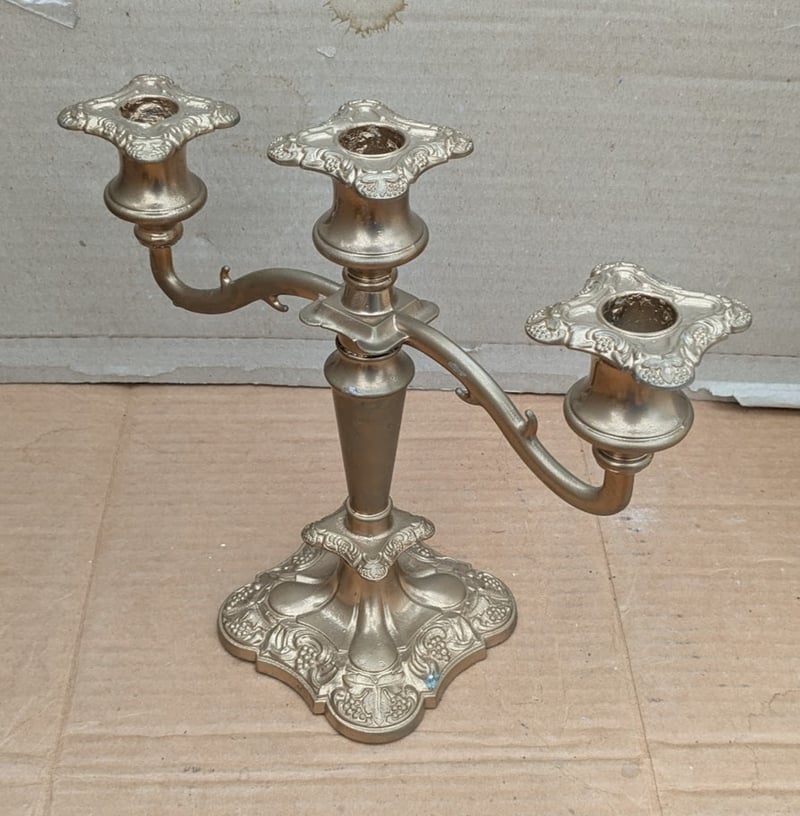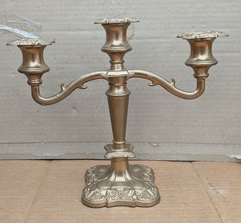 VINTAGE ORNATE CANDELABRA, 3 SCONCES , ALL METAL BRASS COLOR
