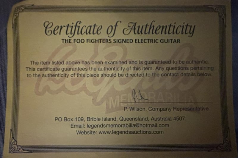 FOO FIGHTERS SIGNED ELECTRIC GUITARThe Foo Fighters Electric Guitar Personally Signed On The Pickguard By Dave Grohl, The Item Is Accompanied By A Certificate Of Authenticity.Condition: Good - Refer To Images585043+4