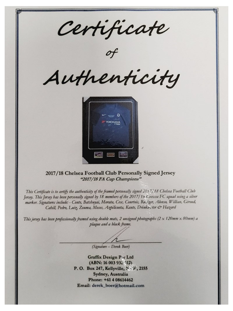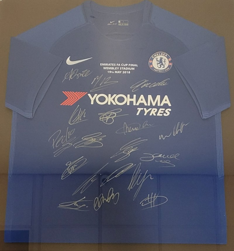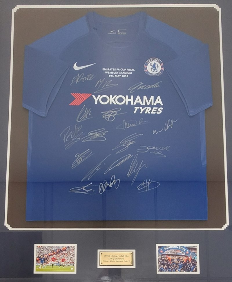 2017/18 CHELSEA FOOTBALL CLUB SIGNED AND FRAMED JERSEY