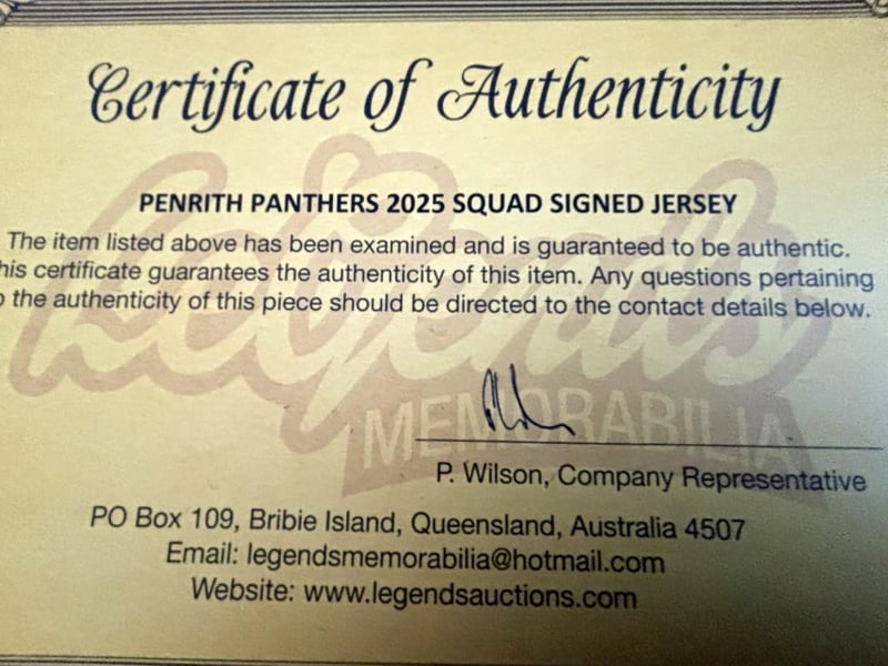 Penrith Panthers 2025 Squad Signed Jersey. The Jersey Is Size L. The Item Is Accompanied By A Certificate Of Authenticity.