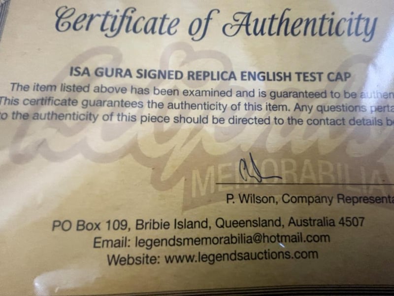 GLAMOUR COMMENTATOR ISA GUHA SIGNED ENGLISH TEST CAP