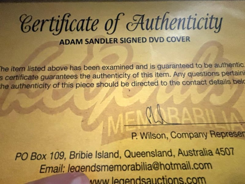 Adam Sandler Signed '50 First Dates' Dvd Cover. The Item Is Accompanied By A Certificate Of Authenticity.